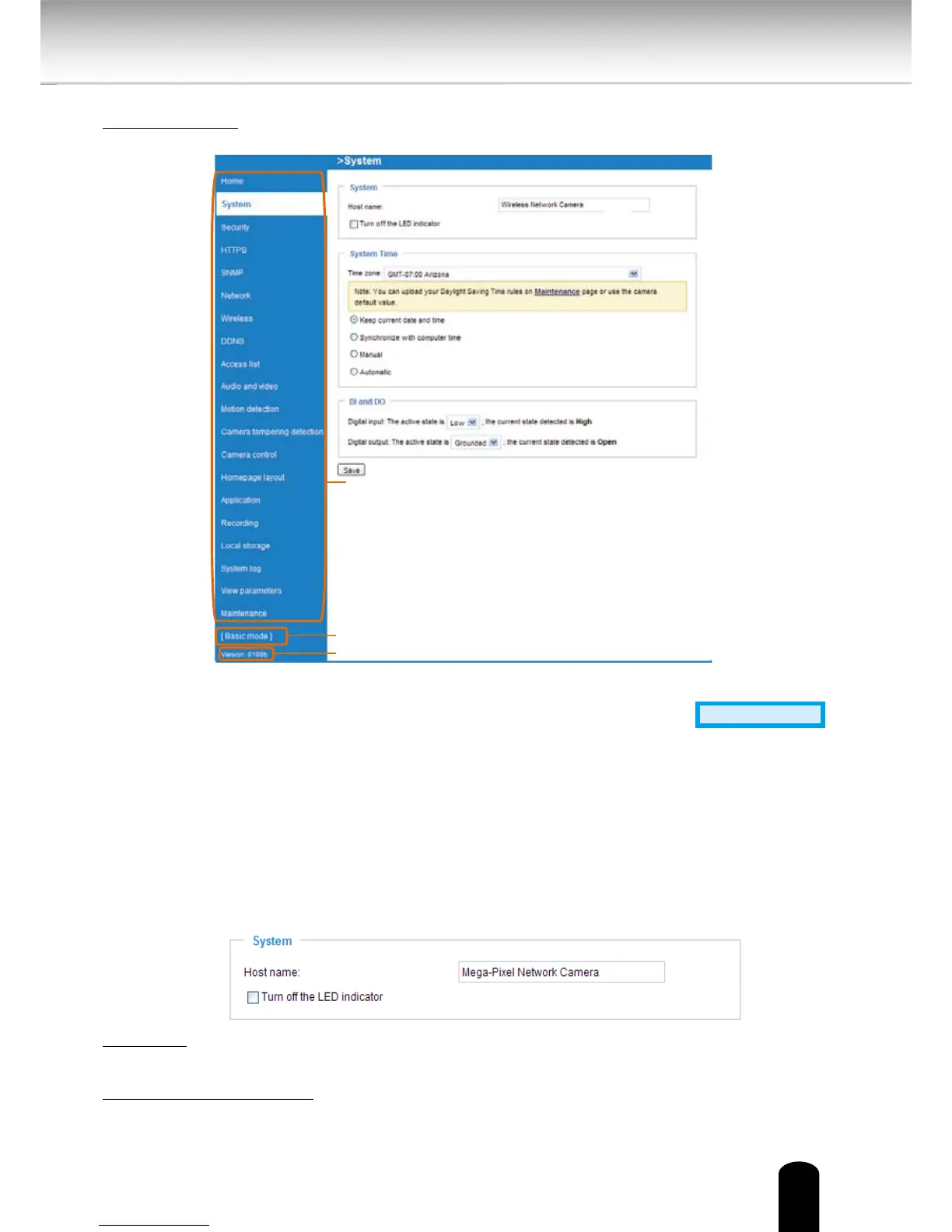 Host name: Enter a desired name for the Network Camera. The text will be displayed at the top