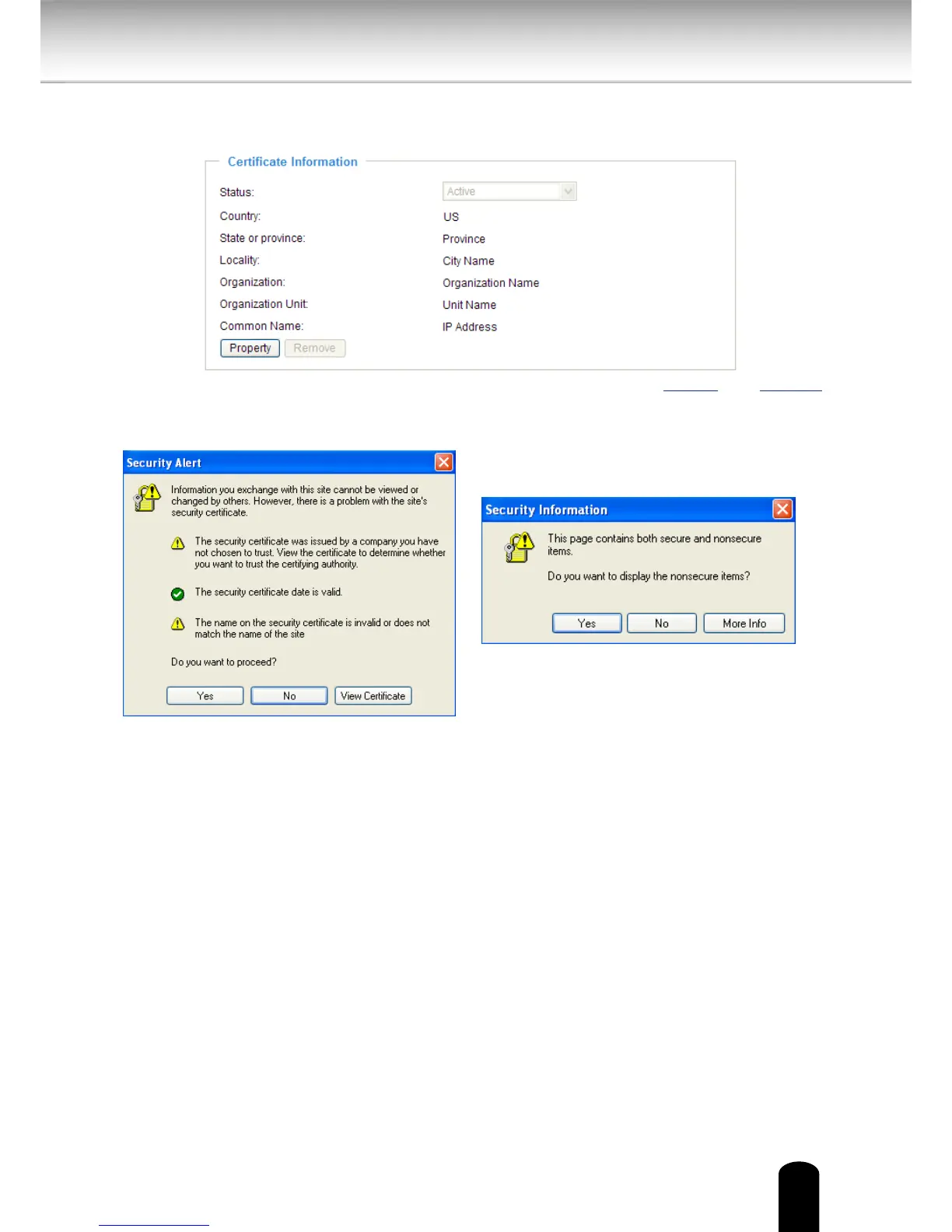 the address bar and press Enter on your keyboard. Some Security Alert dialogs will pop up.