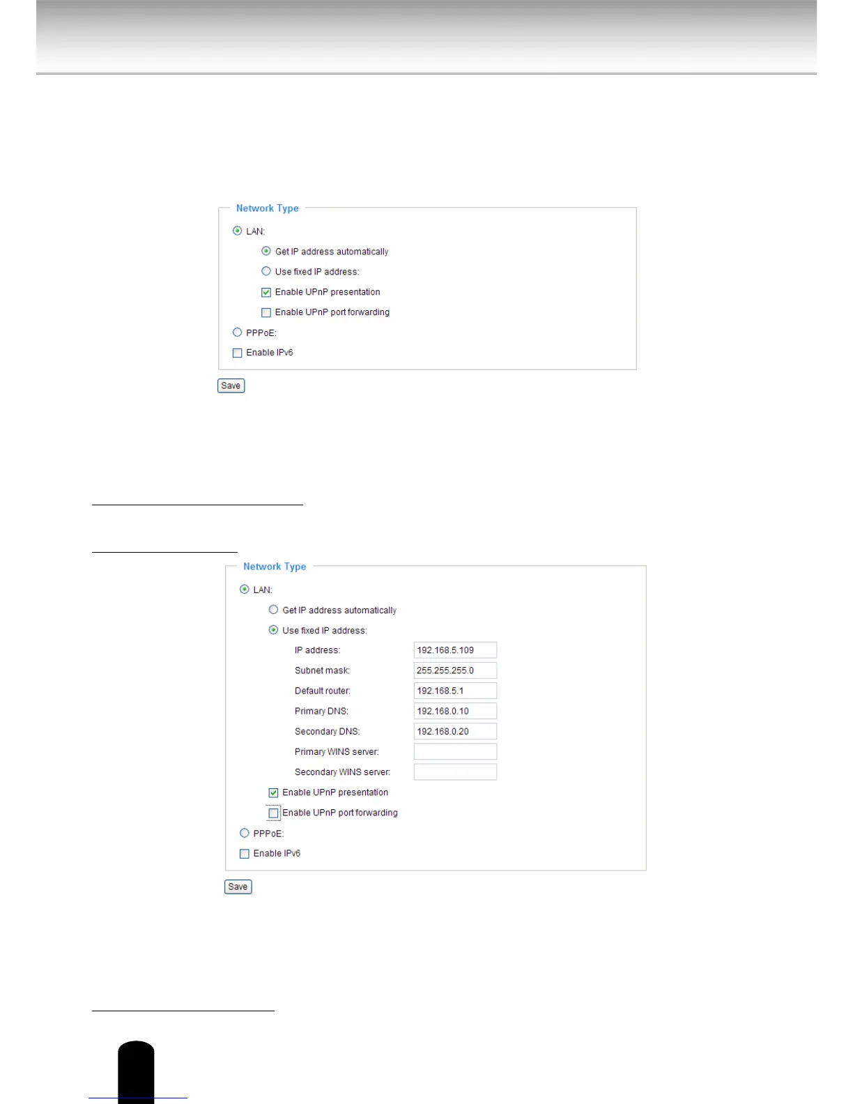 Use xed IP address: Select this option to manually assign a static IP address to the Network