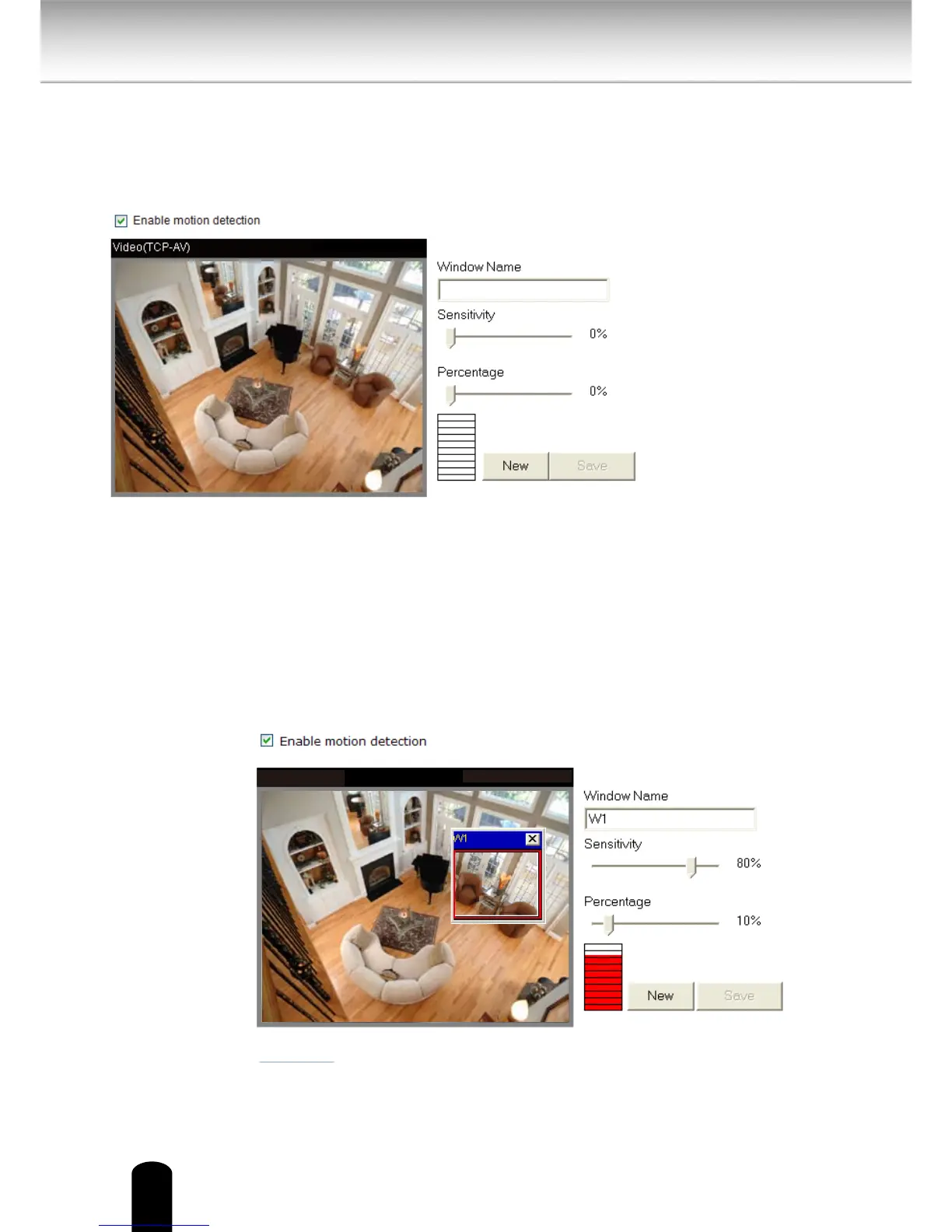 threshold, the red bar rises. Meanwhile, the motion detection window will be outlined in red.
