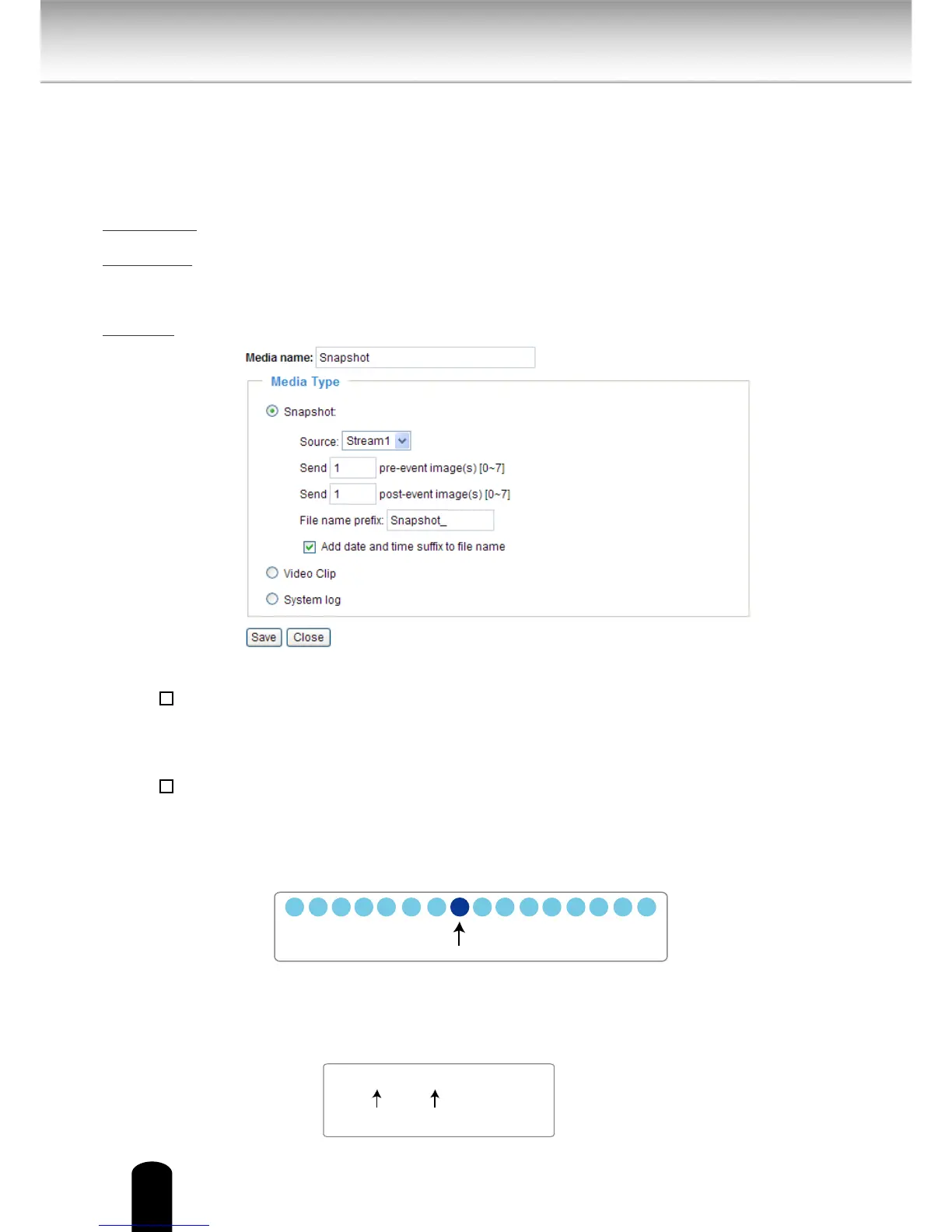 There are three choices of media types available: Snapshot, Video Clip, and System log.
