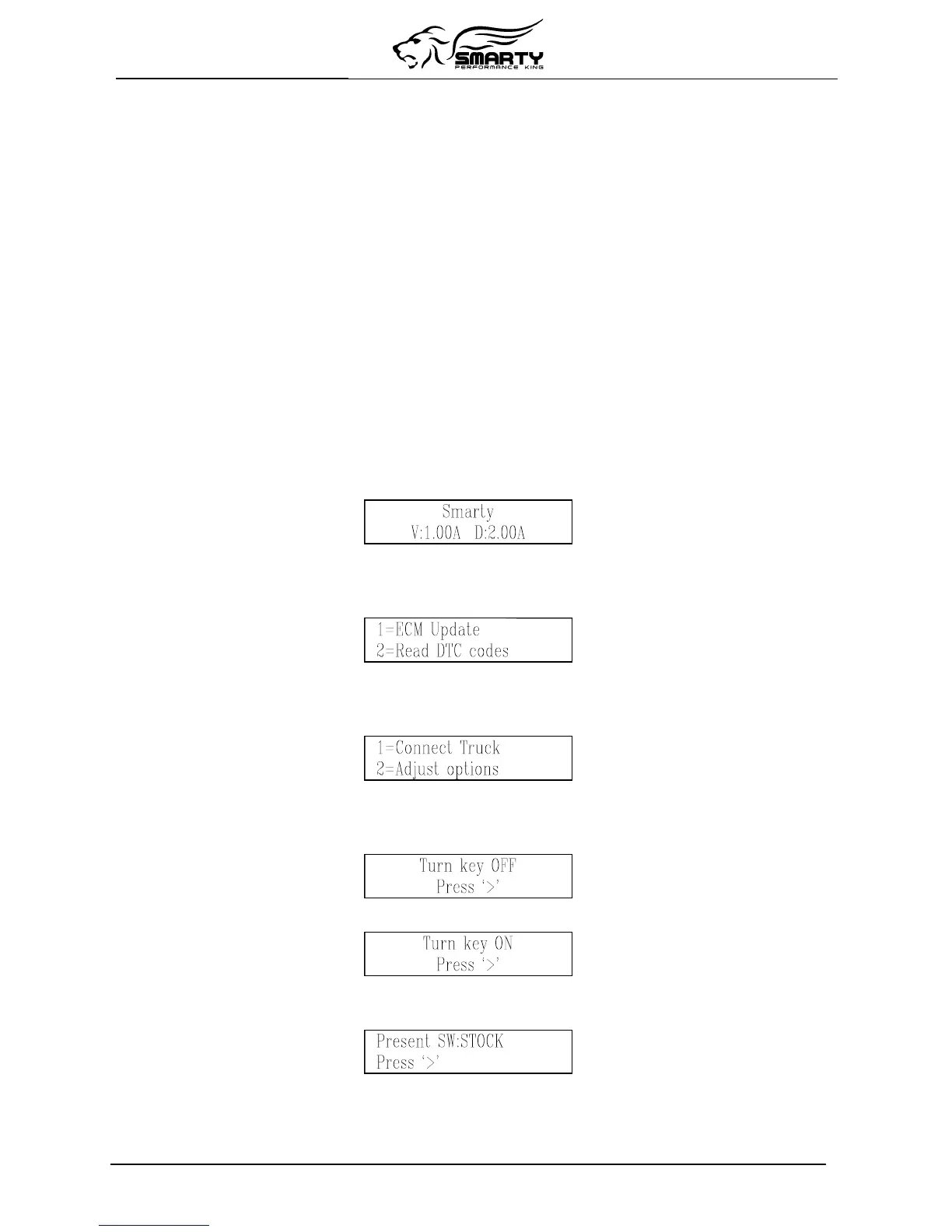 ug the Smarty cable into the diagnostic connector of your vehicle. Smarty will display: