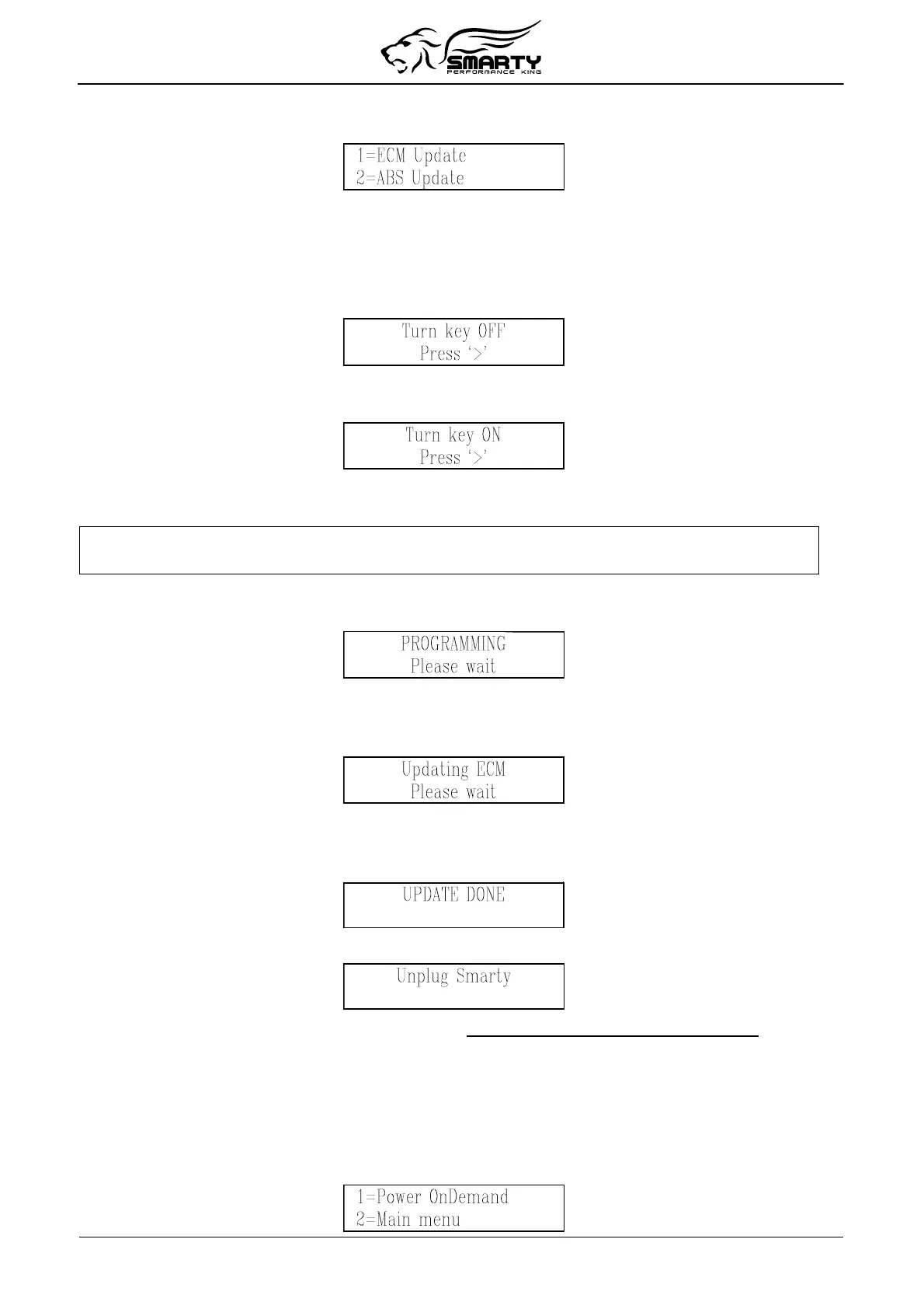 instruction. DO NOT DISCONNECT Smarty before the updating session is completed.