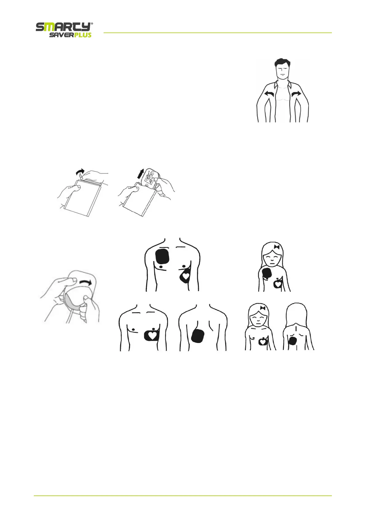 In order to be able to place the defibrillation pads on the chest, you must
