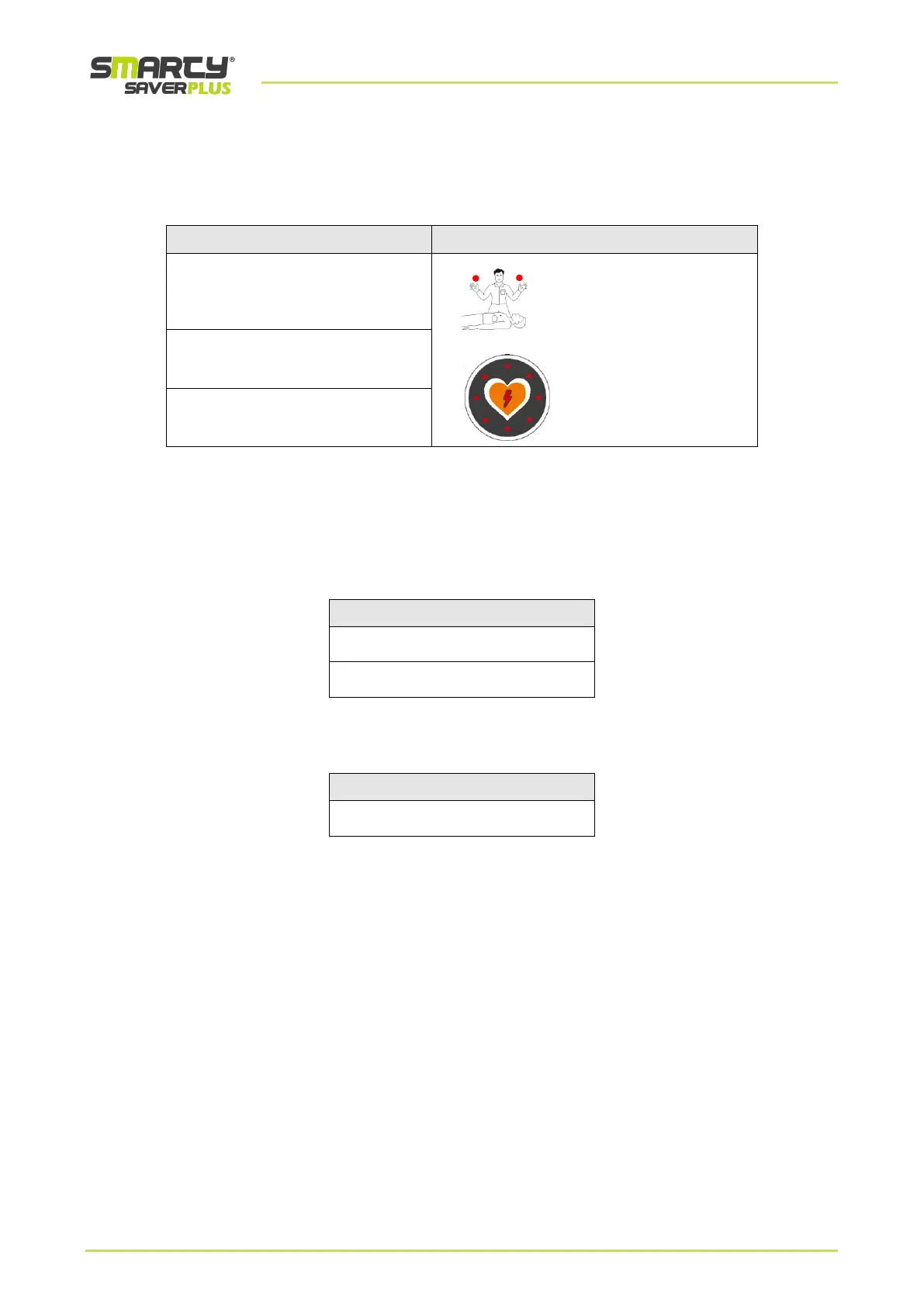 If a Ventricular Fibrillation or Tachycardia is detected, SMARTY Saver Plus will inform the operator with the following