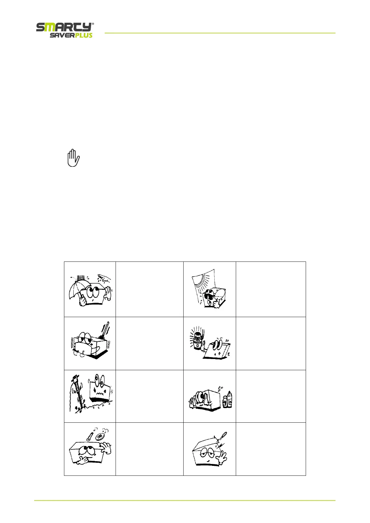 Do not immerse SMARTY Saver Plus in any liquids.
