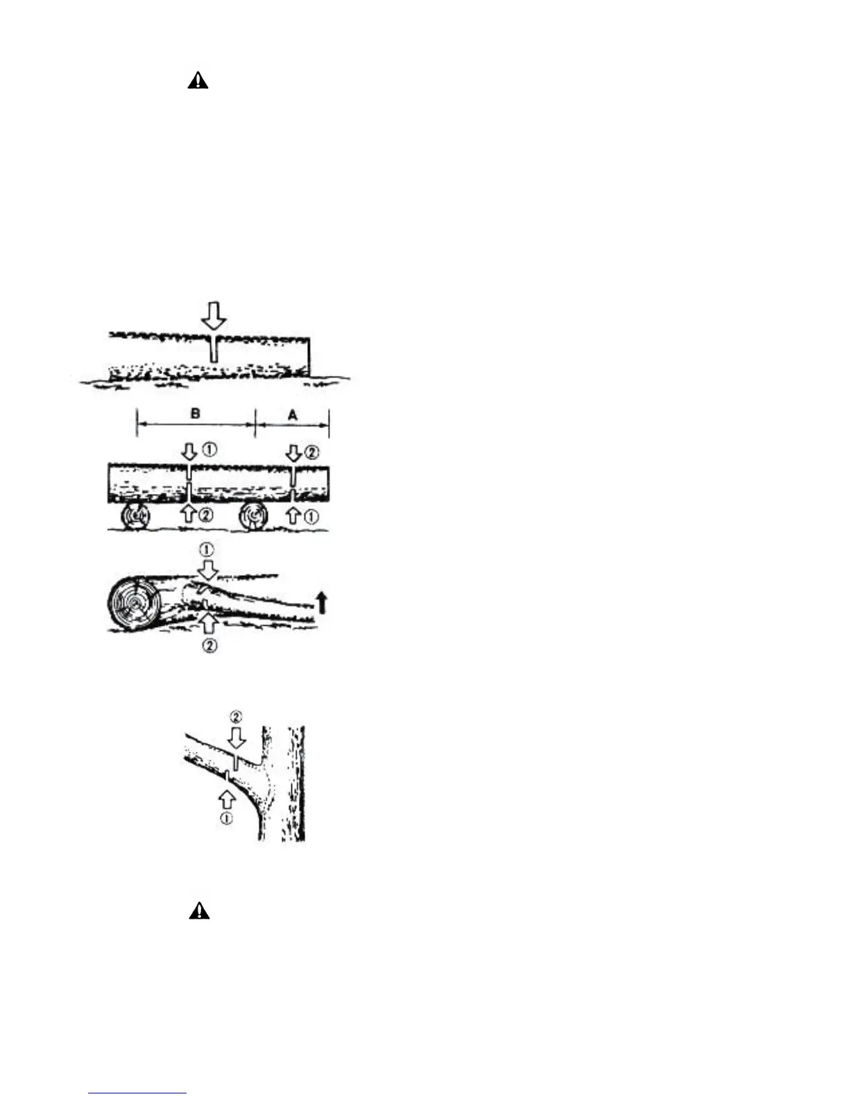 Esteja atento para que o tronco cortado não rode. Especialmente quando se
