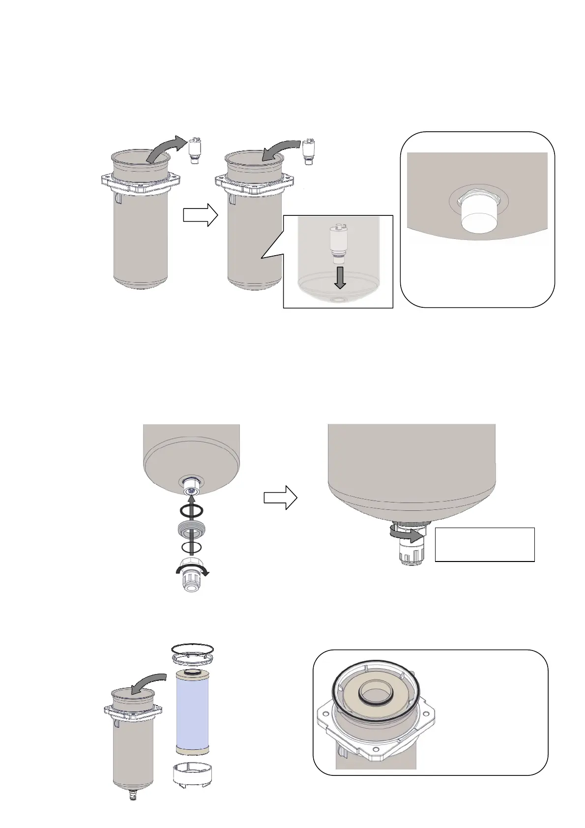 K) Insert the guide and element in order, and mount the O-ring for the bowl.