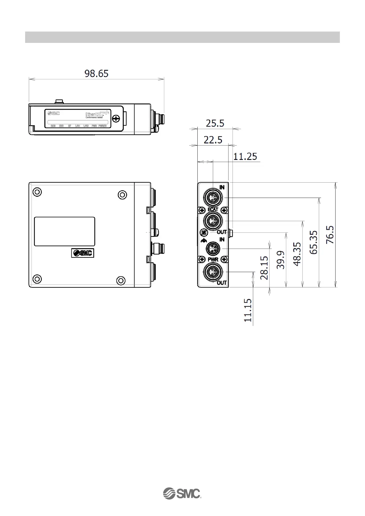 SMC Networks EtherCAT EX260-VEC1 - Dimensions