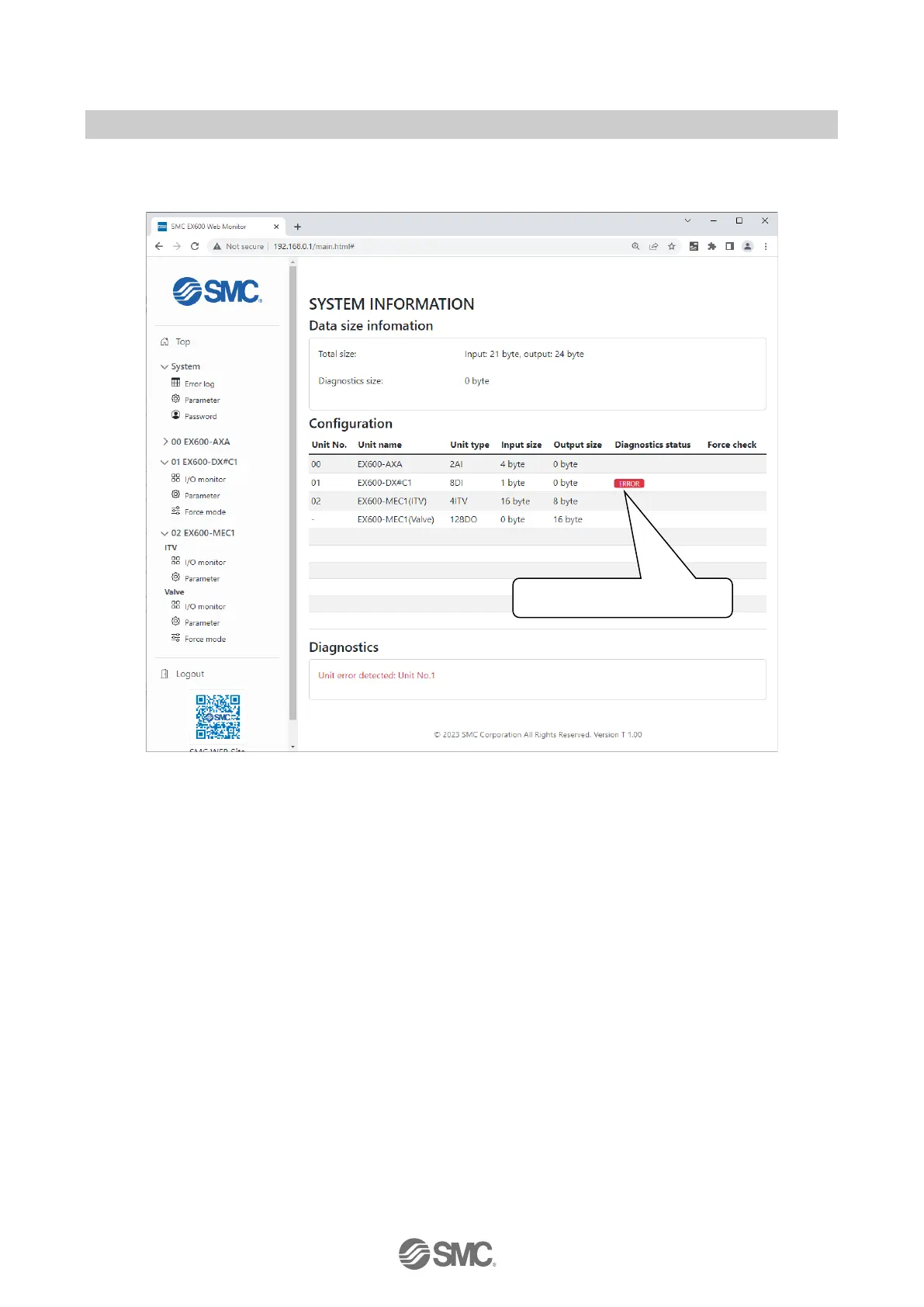 (6) When unit diagnosis is detected, the diagnostic information is displayed on the SYSTEM