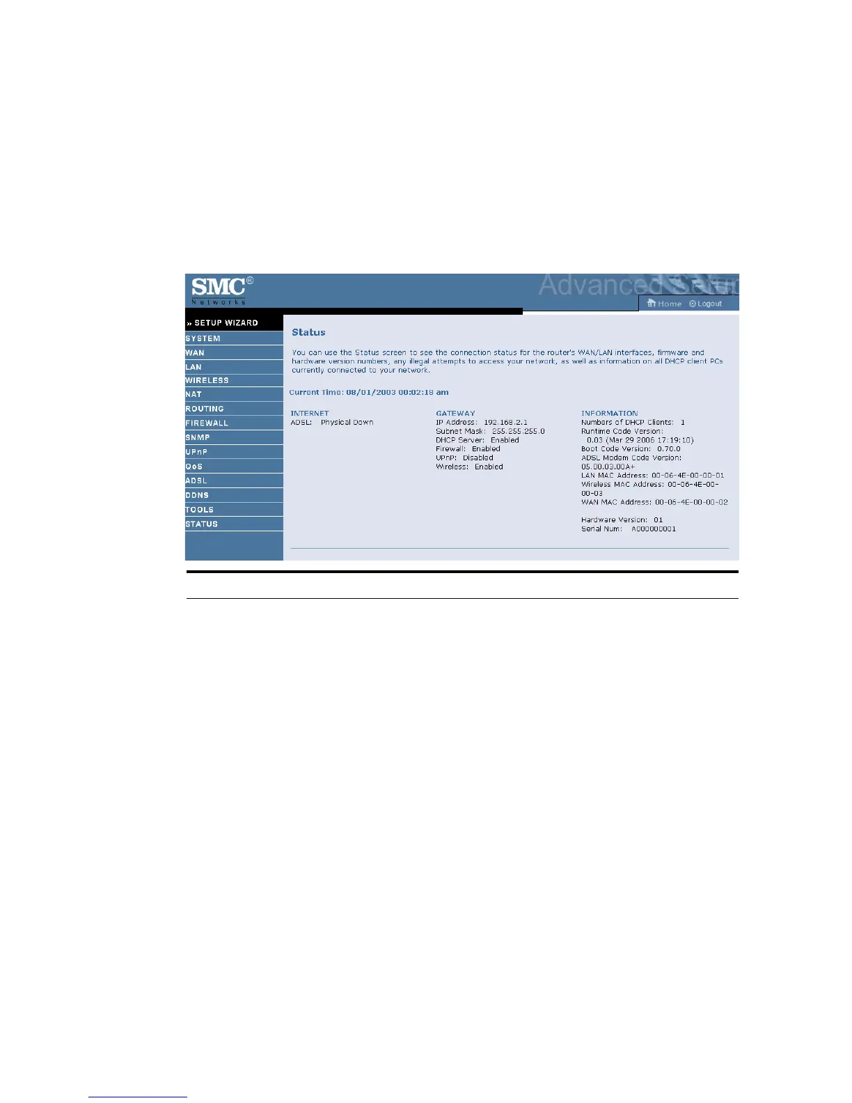 LAN Sets the TCP/IP configuration for the Barricade LAN interface