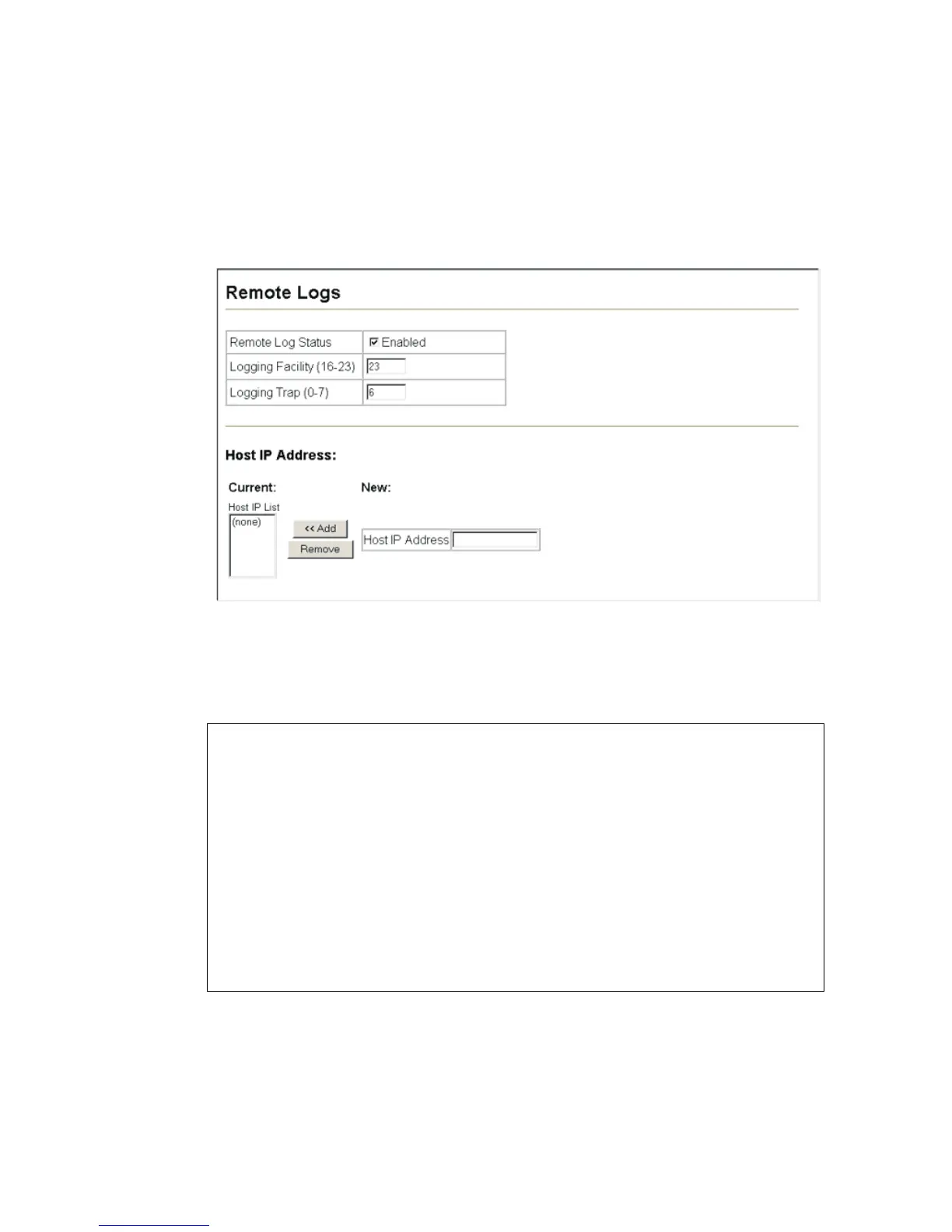Web – Click System, Log, Remote Logs. To add an IP address to the Host