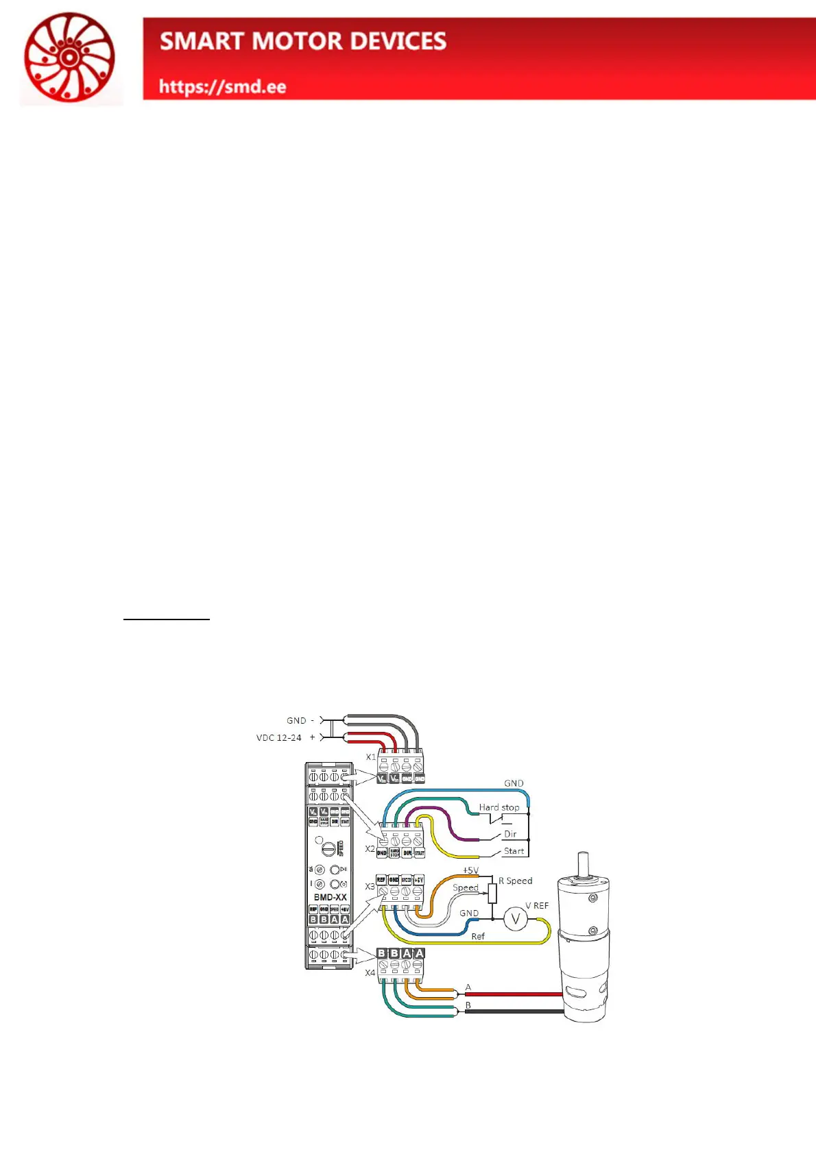 Fig.2. BMD-20DIN connection scheme (example of speed control by an external potentiometer.)