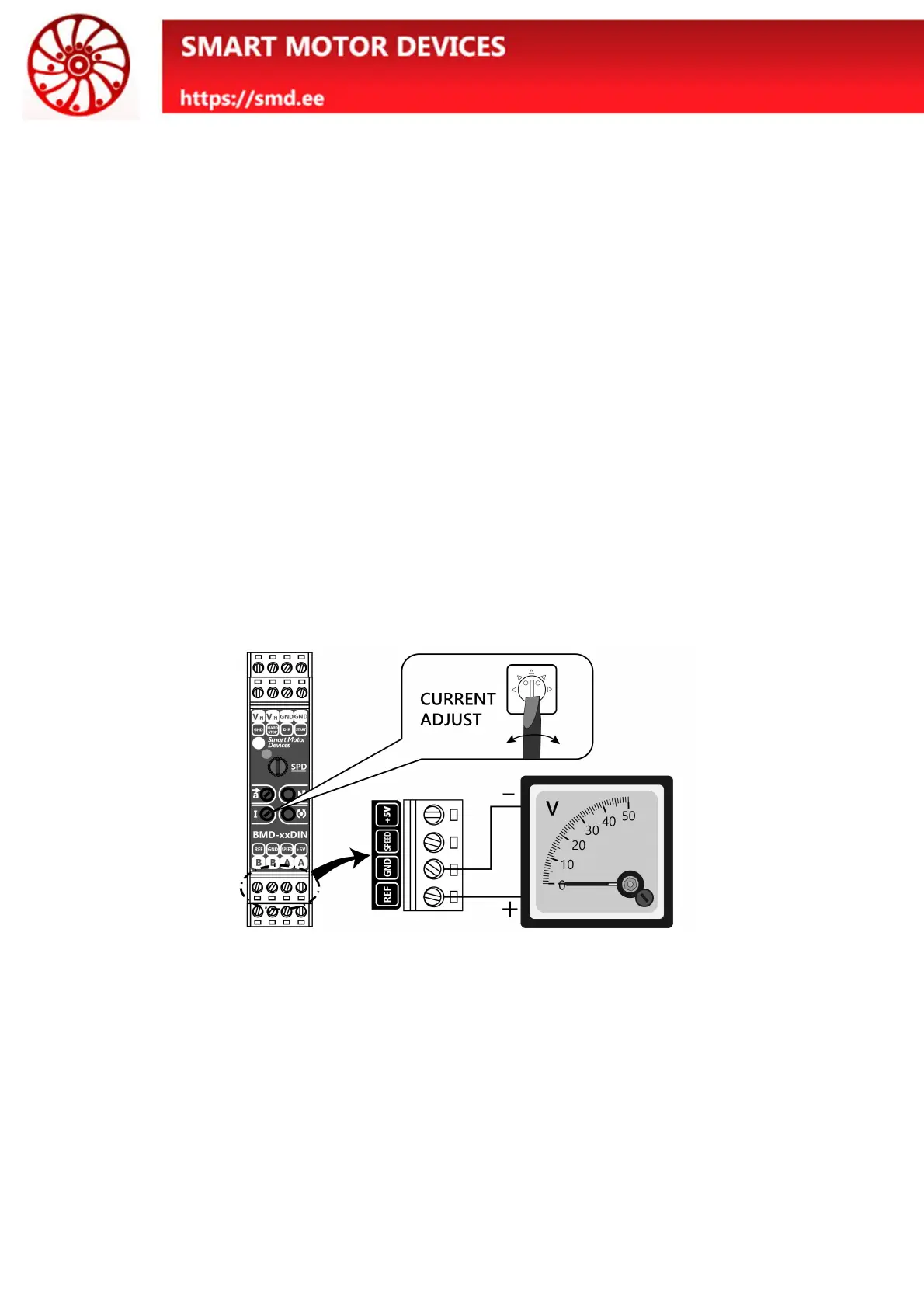 8) Using the potentiometer «CURRENT ADJUST», set the maximum motor current. Adjust the