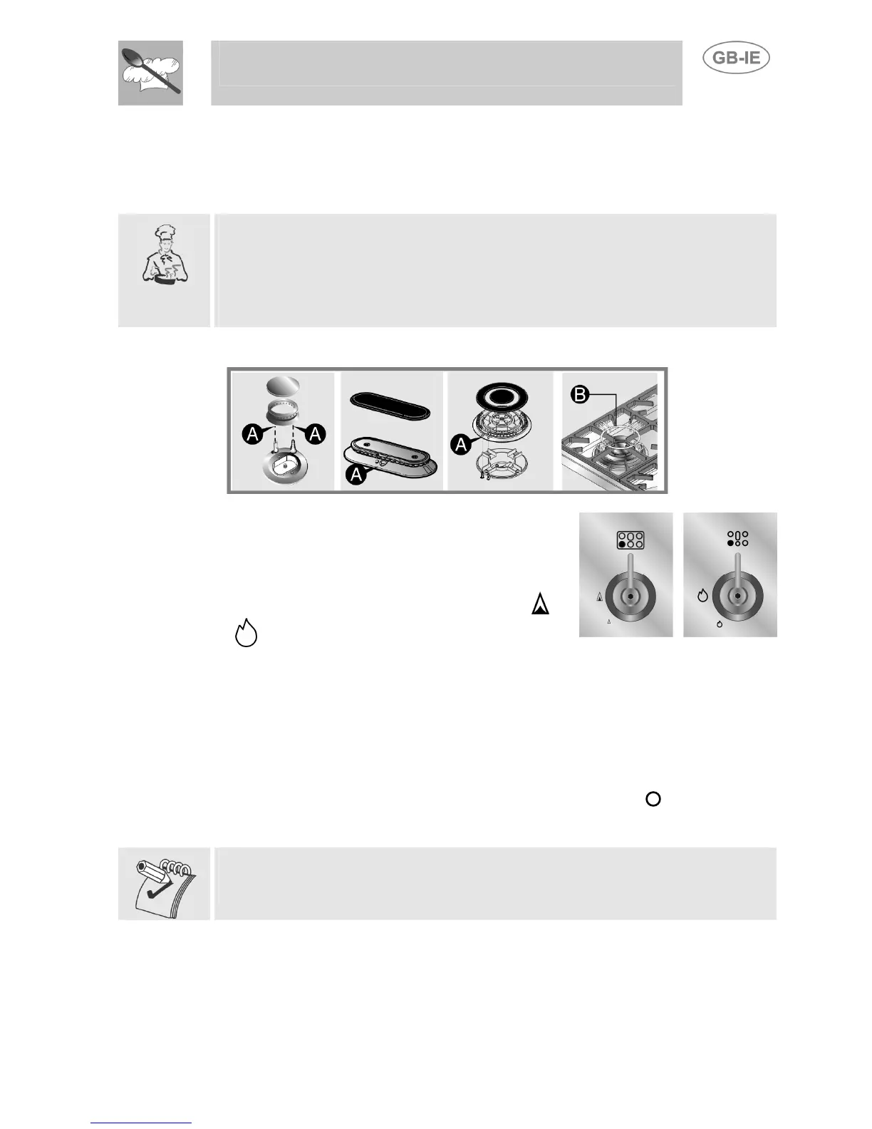 Before lighting the hob burners check that the flame caps are in the