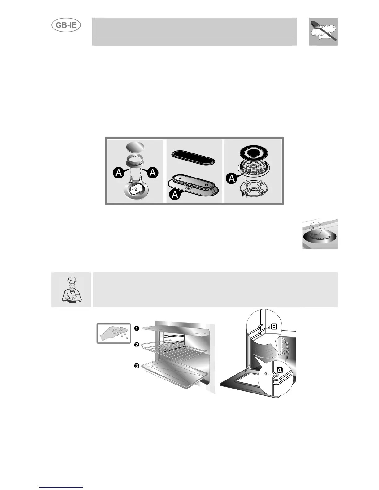 • Clean the oven grill and side guides with hot water and non-abrasive