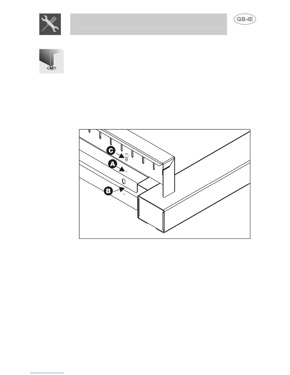 • Secure the upstand to the top by tightening screws C.