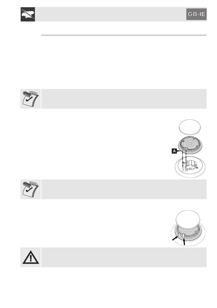 are correctly in place with their respective burner caps and