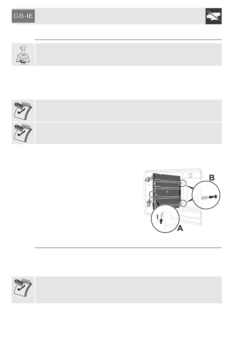 • Clean the oven racks with warm water and non-abrasive detergent. Rinse