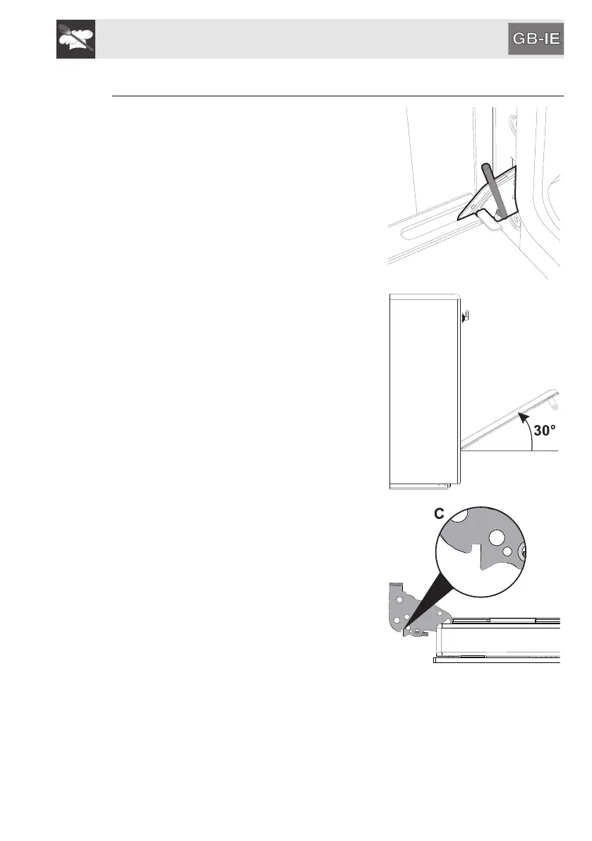 the slots. Lower the door and once it is in place