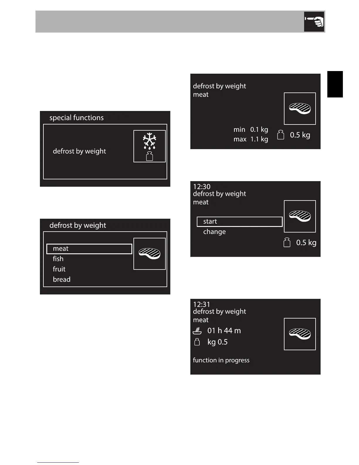 to select defrost by weight from the