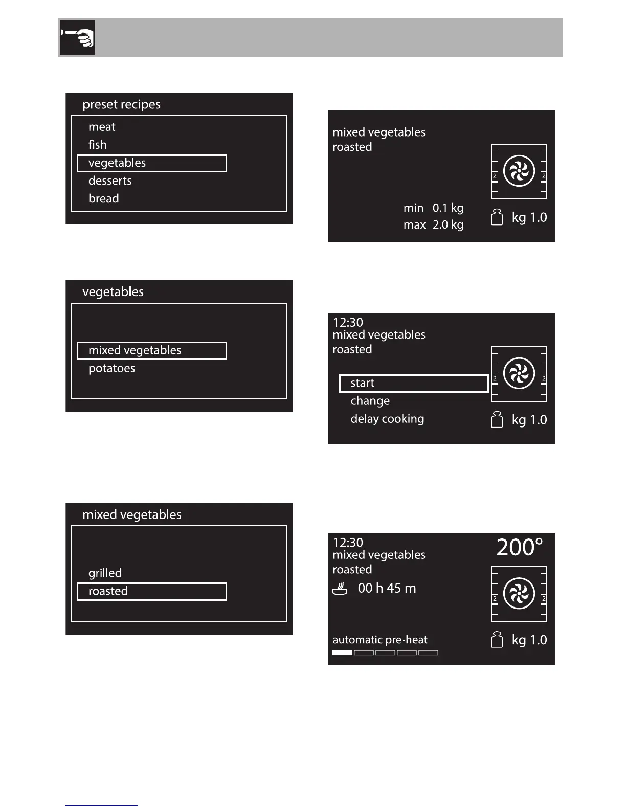 3. Select the sub-category of dish to cook