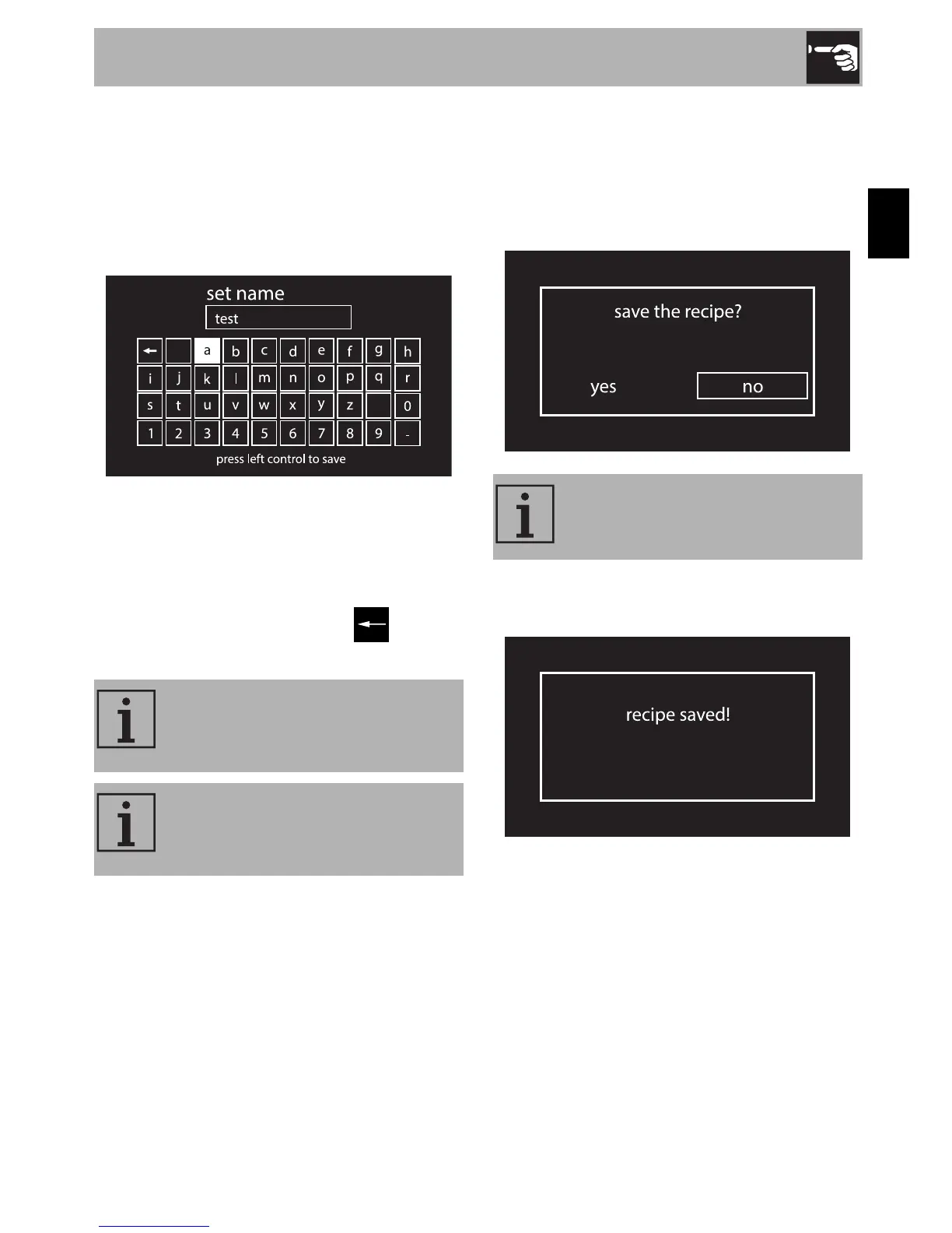 13. Enter the name of the recipe. Turn the