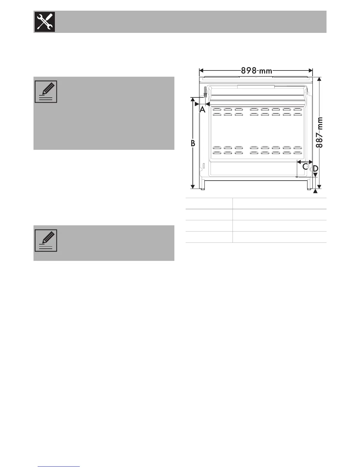 Position of gas and electrical connections.
