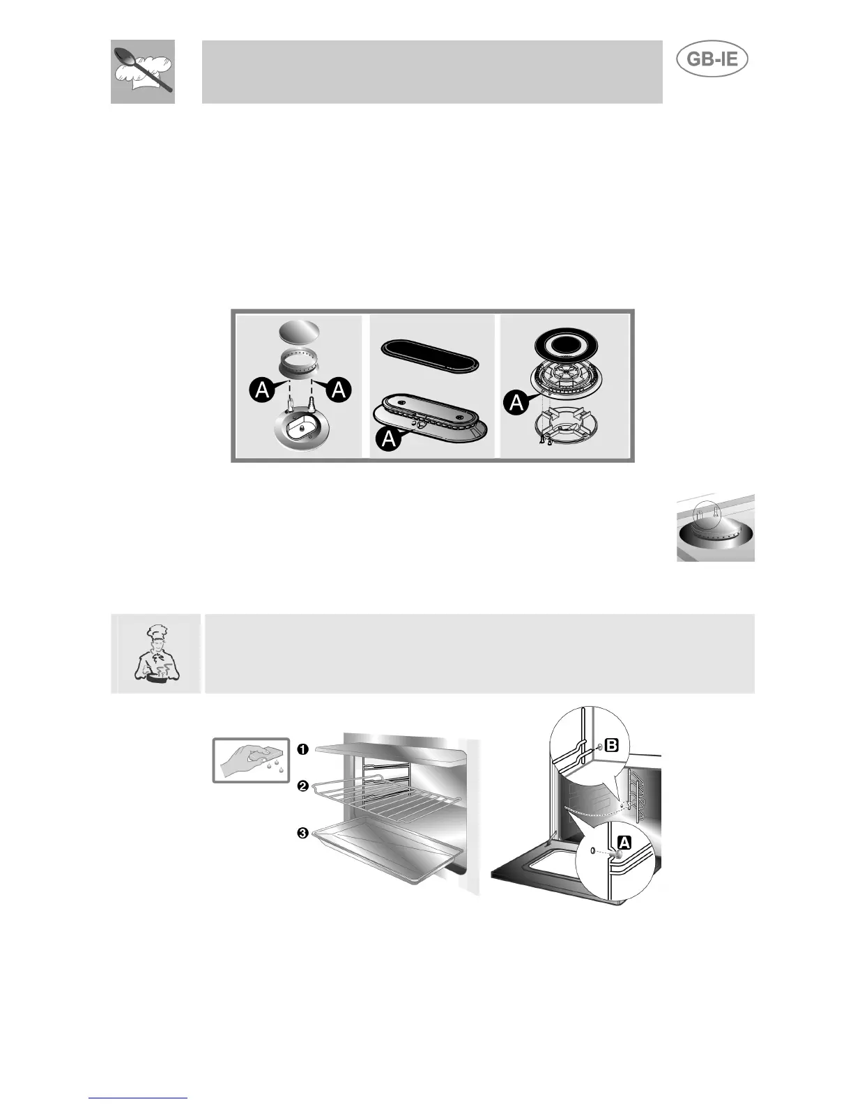 • Clean the oven grill and side guides with hot water and non-abrasive