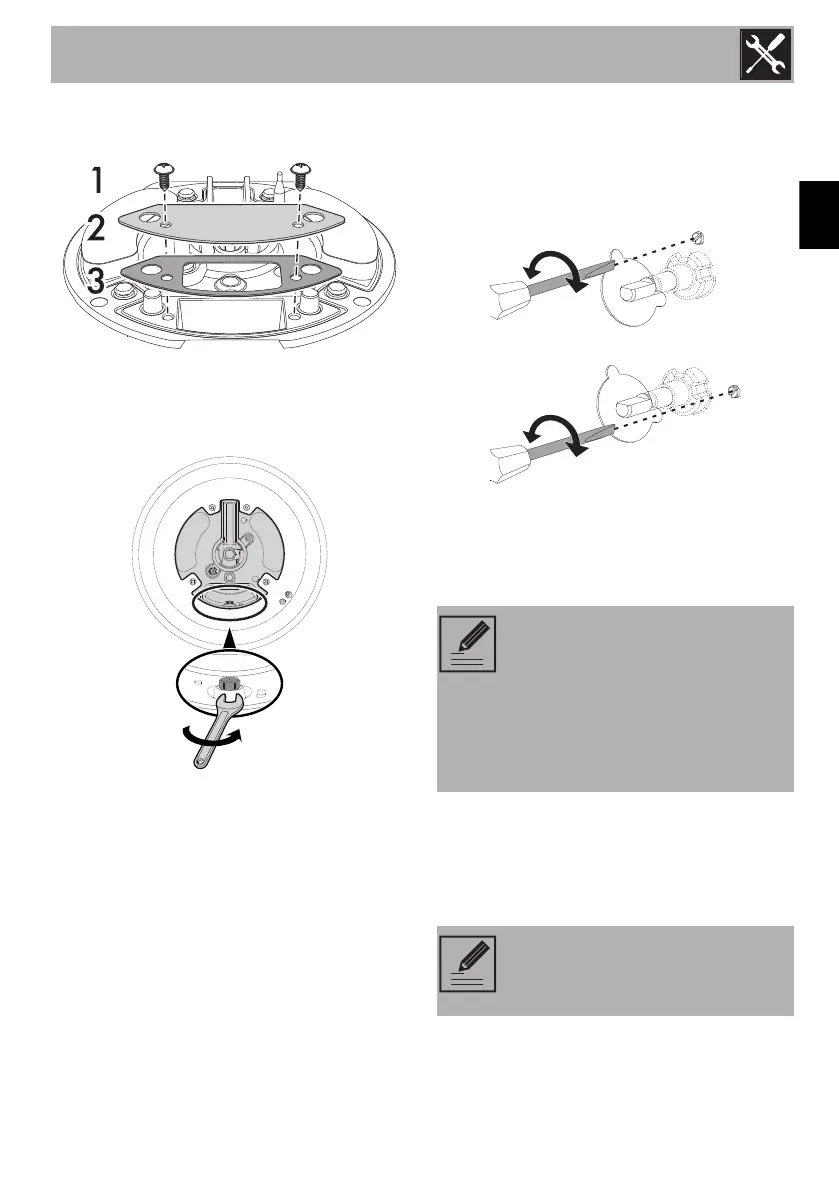 2. Remove in sequence, the screws (1),