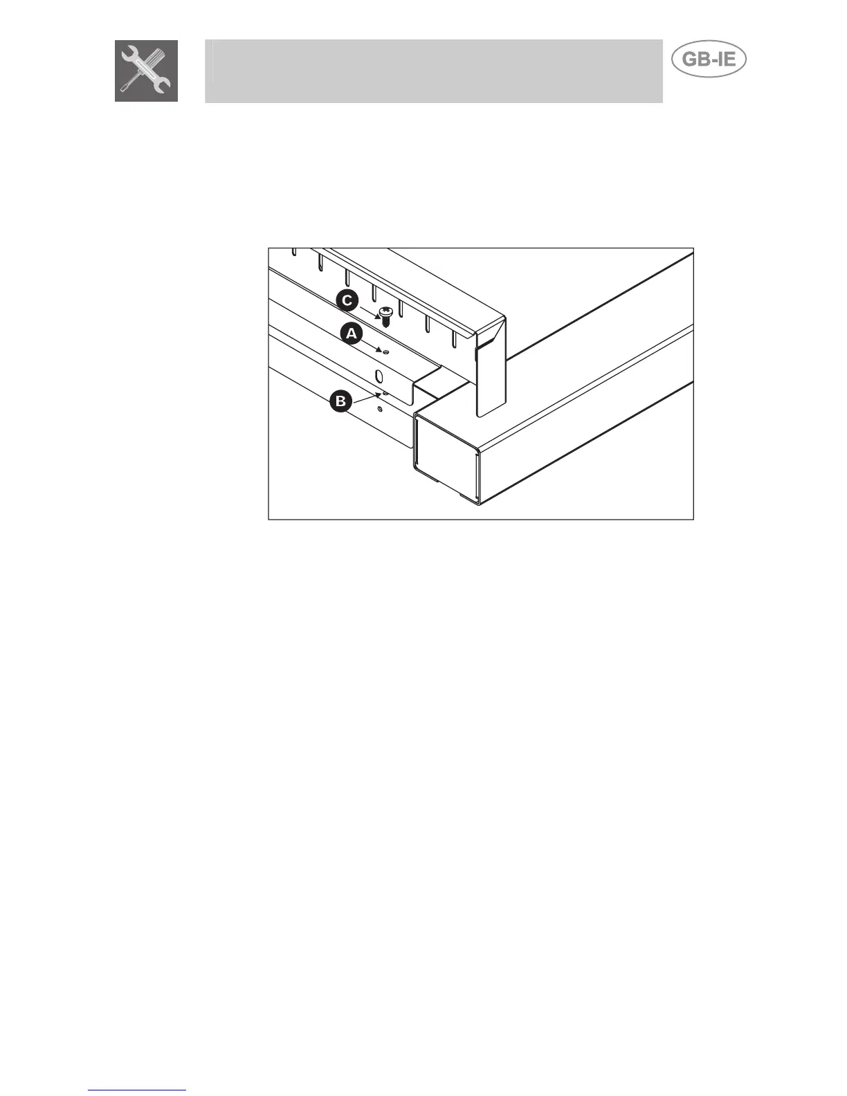 Fix the splash-back to the hob by tightening the screws C.