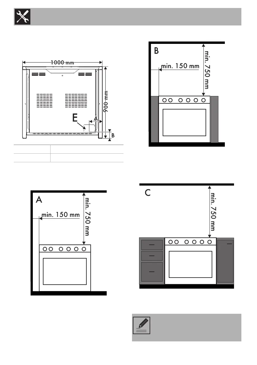 Position of gas and electrical connections