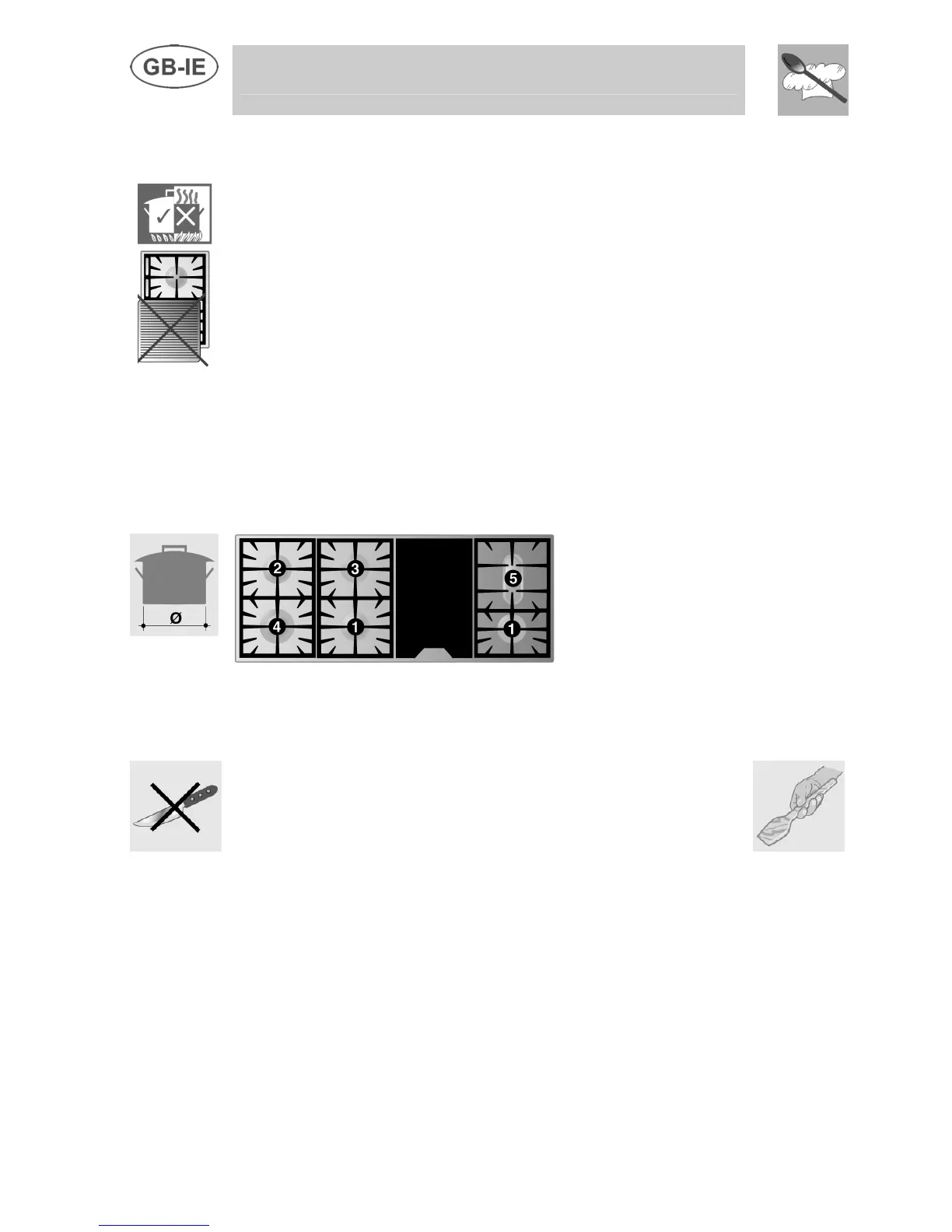 overflow. To avoid burns or damage to the hob, all recipients or griddle