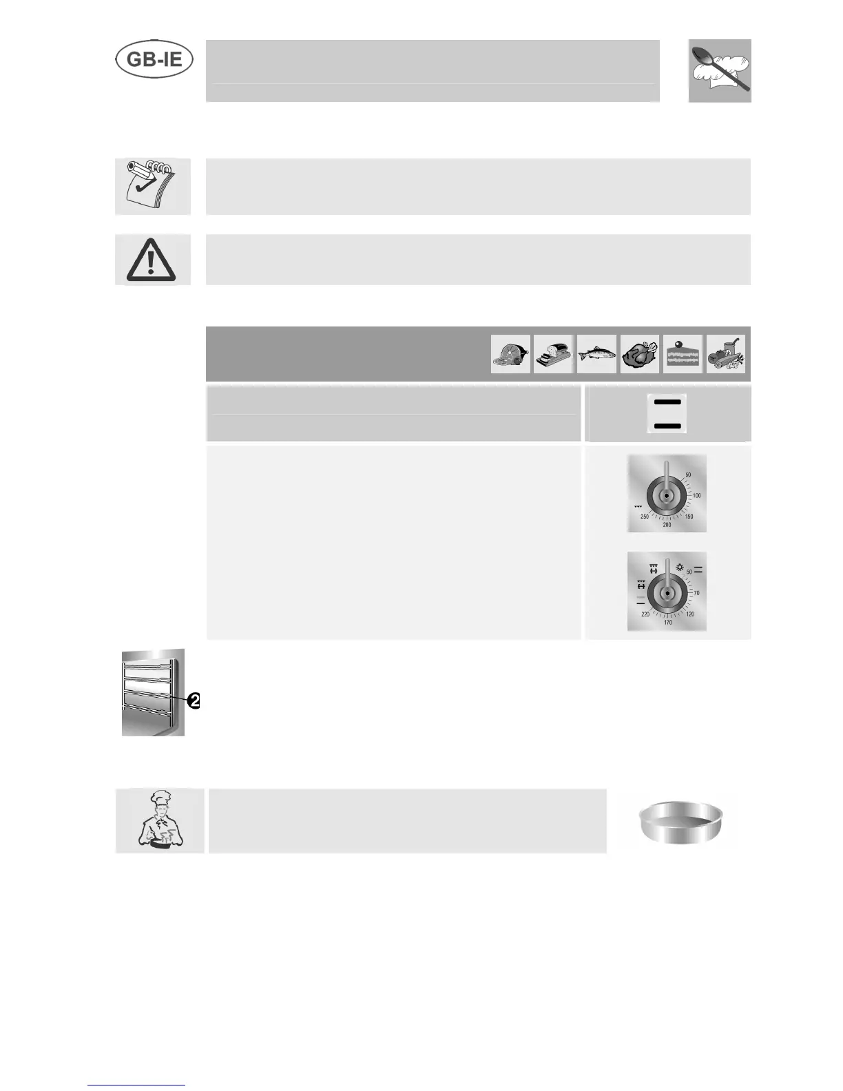 In fan-assisted mode preheating should be carried out at 30/40°C above