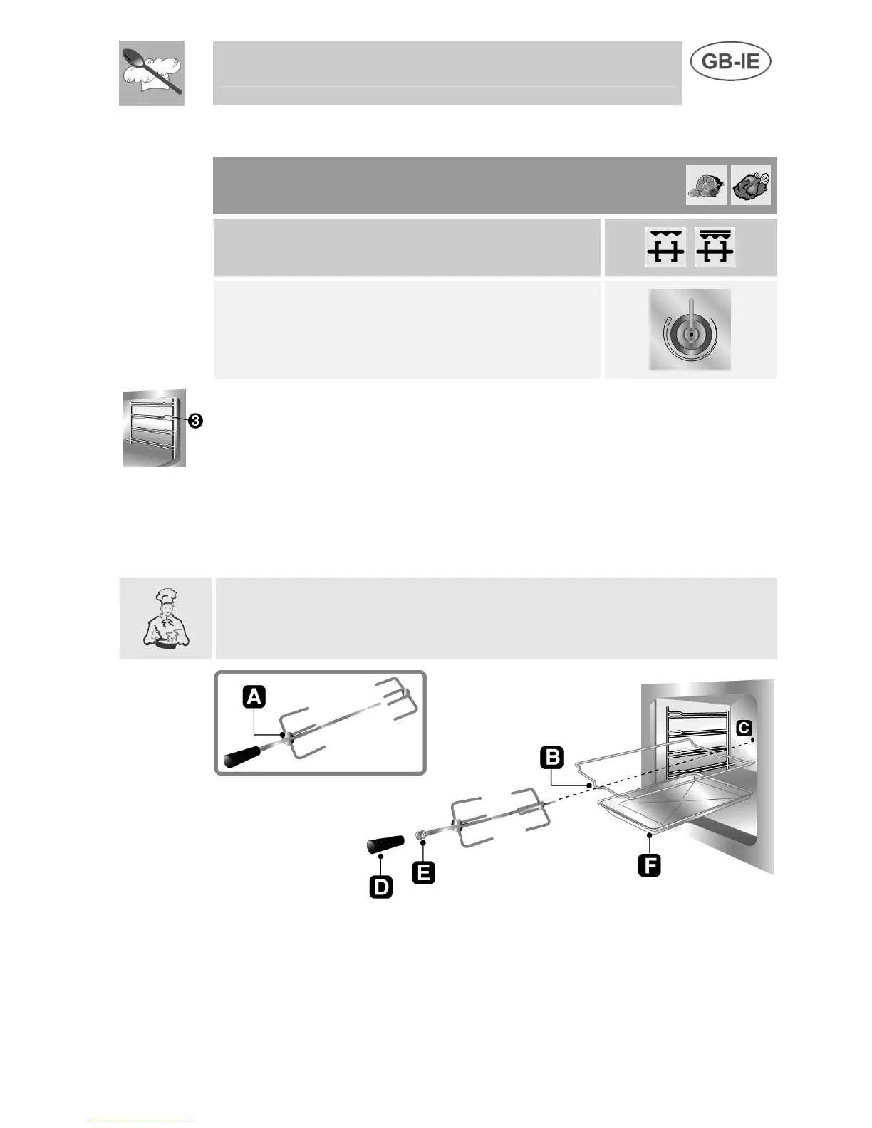 Prepare the spit with the food, blocking fork screws A. Insert frame B
