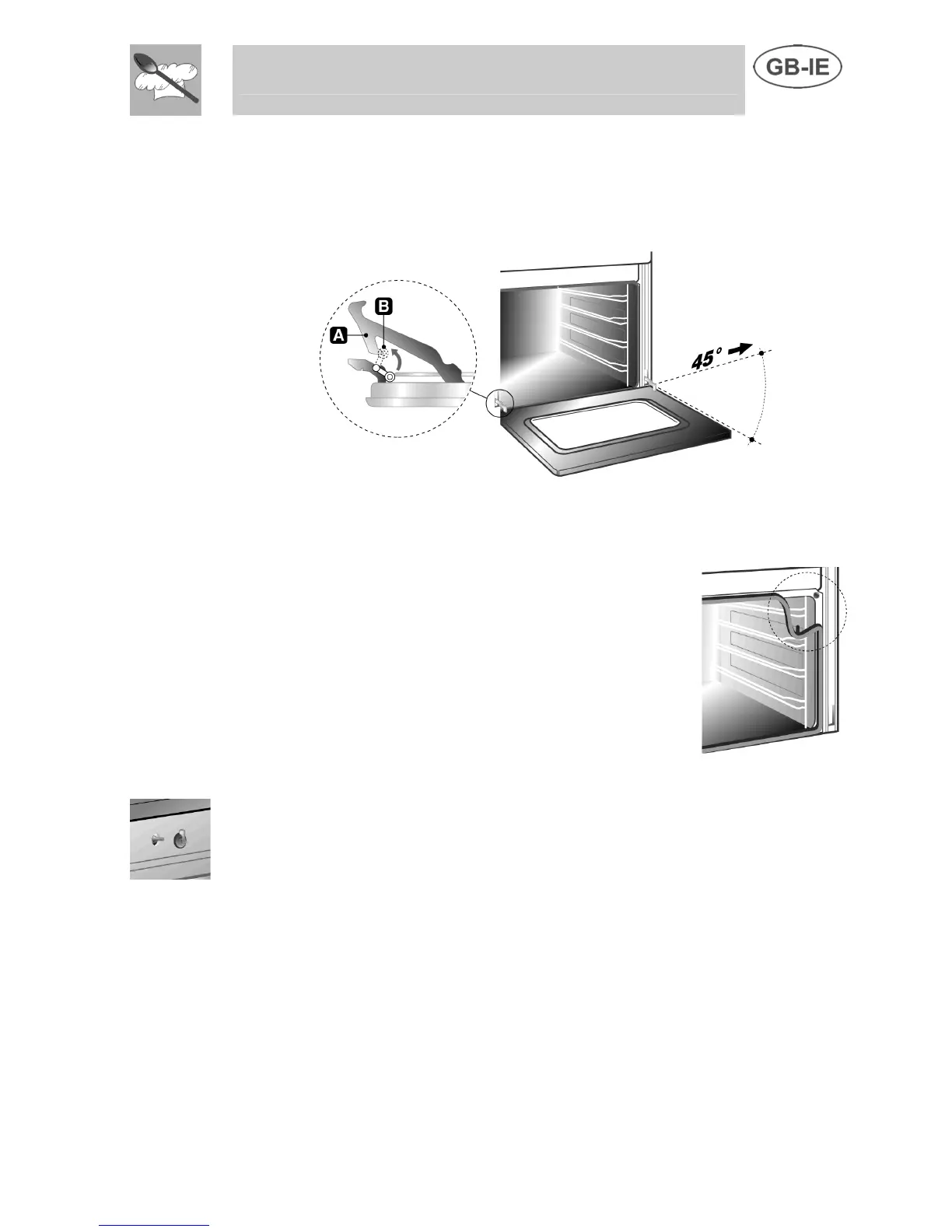 B. Lift up the door forming an angle of about 45° and remove. To refit, slide