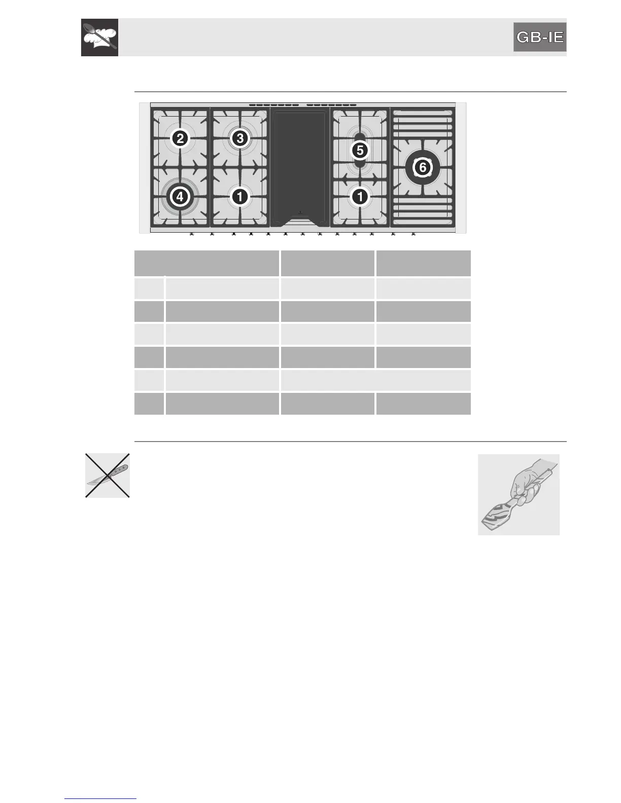 Burner Ø min. (cm) Ø max. (cm)