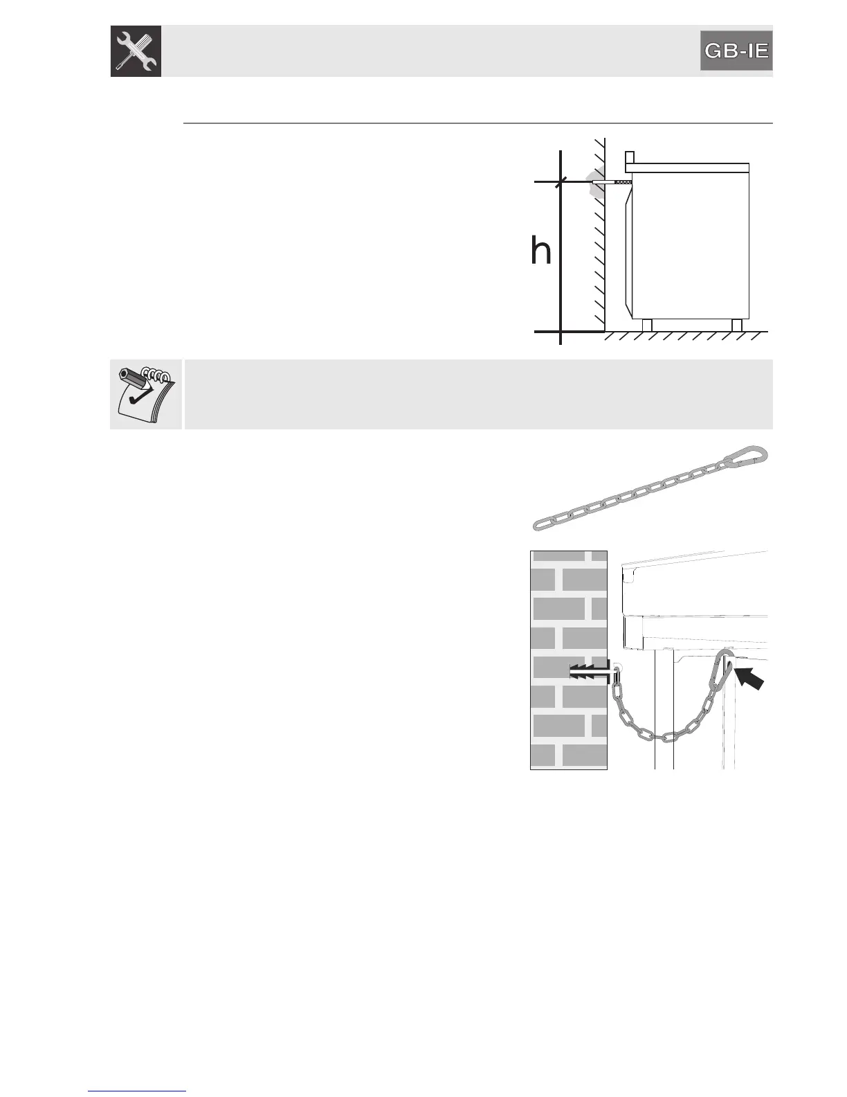 The installer must provide the hook bolt when installing the appliance.