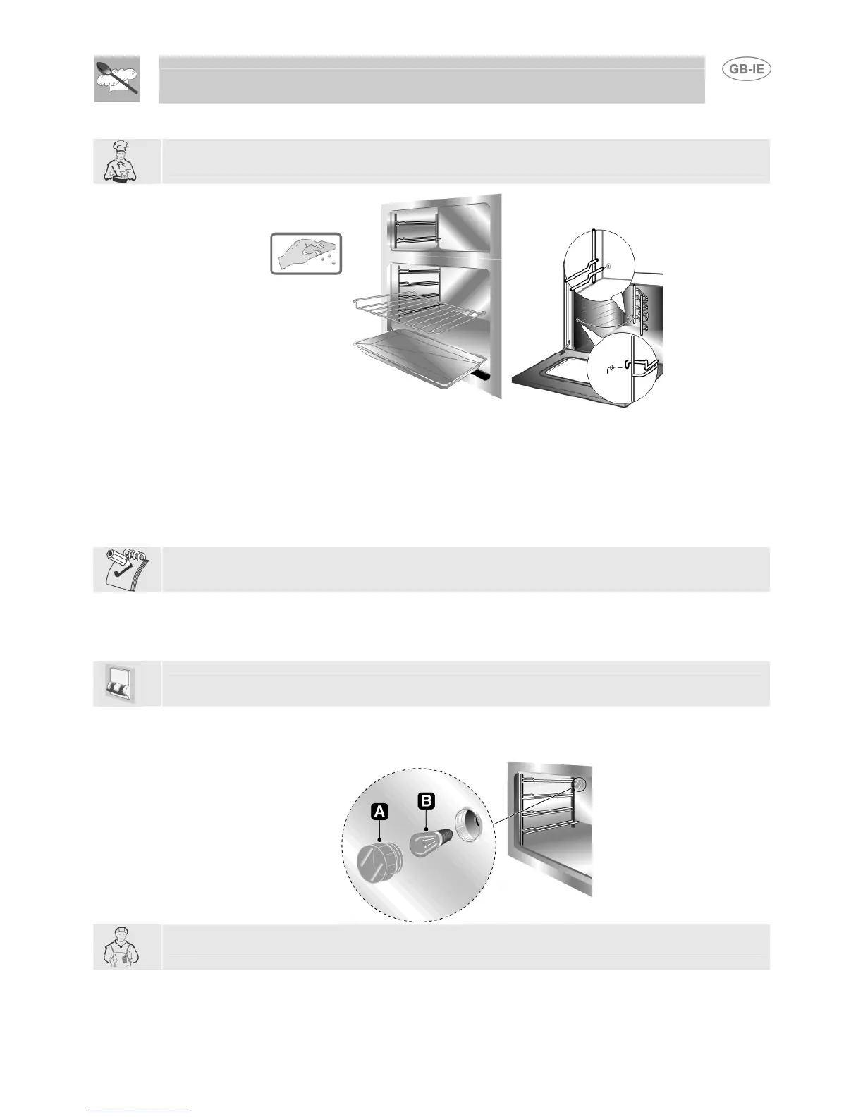 • Clean the oven grill and side guides with hot water and non-abrasive detergent. Rinse and dry.