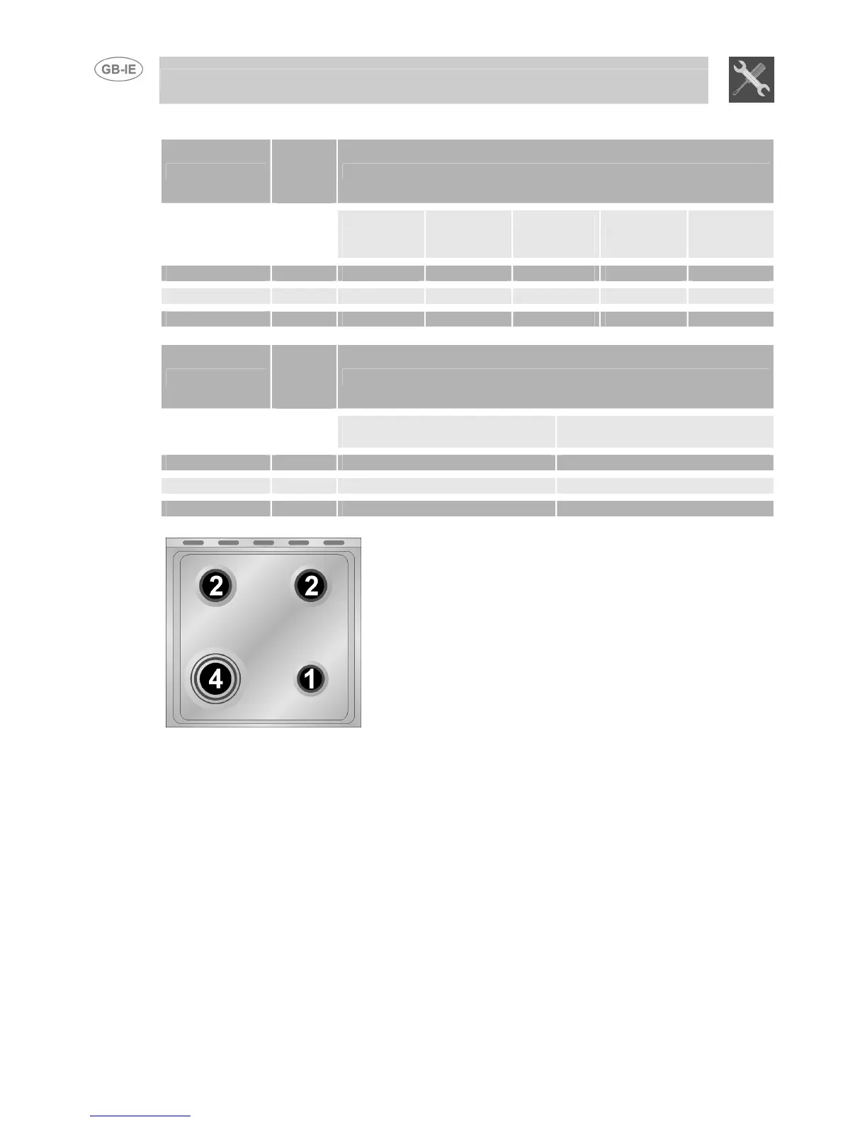 15.2 Burner and nozzle characteristics table