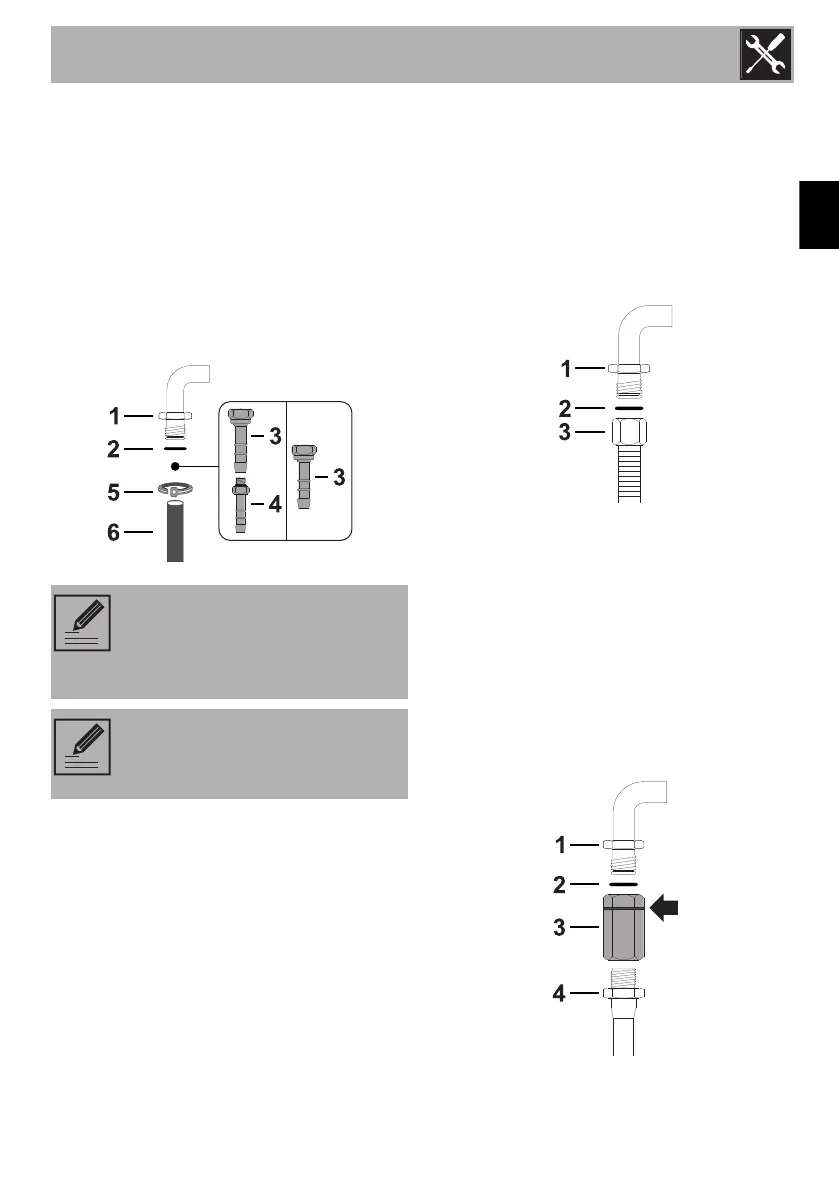 Carefully screw the hose connector 3 to the
