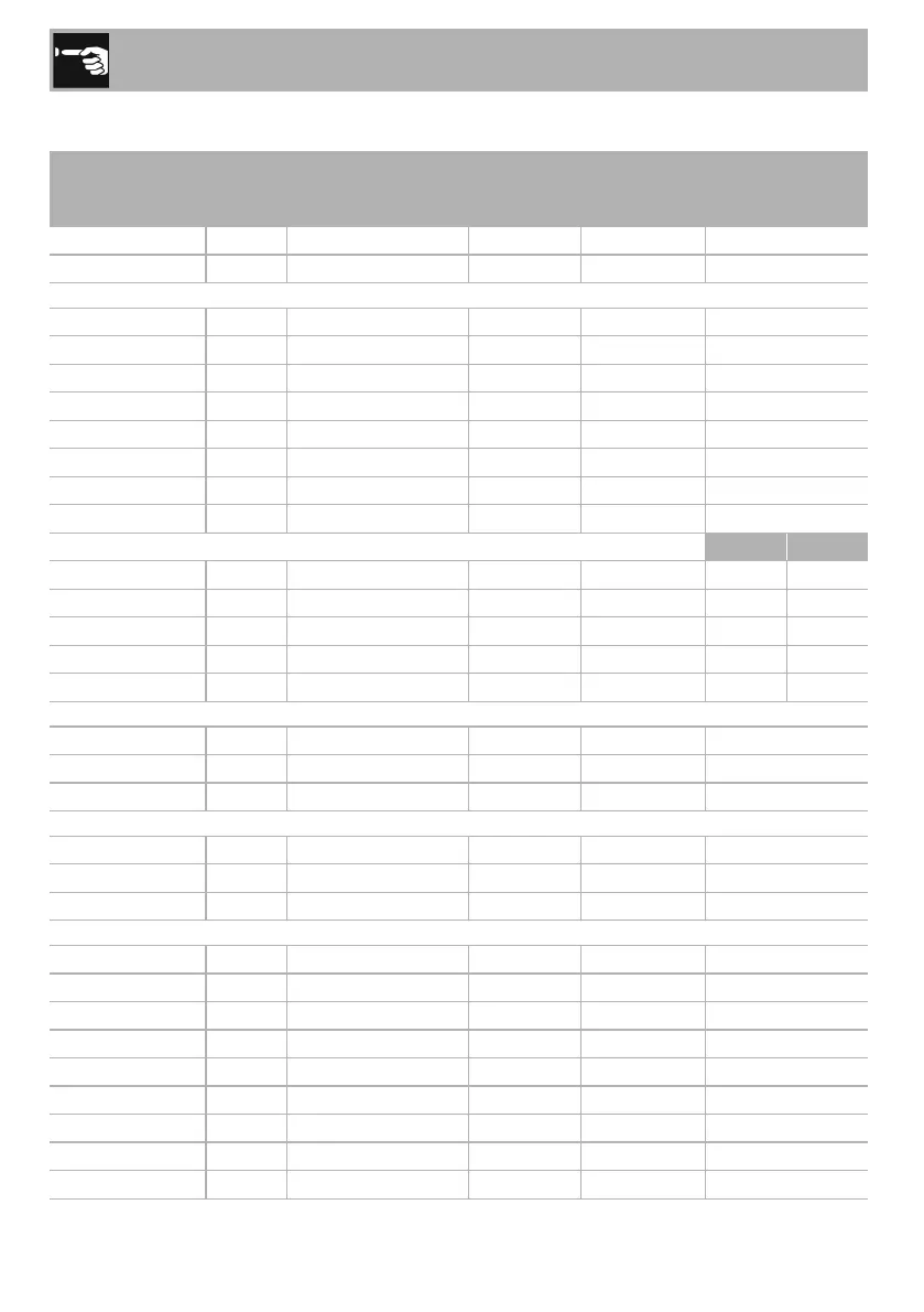 The times indicated in the table do not include preheating times and are provided as a guide only.