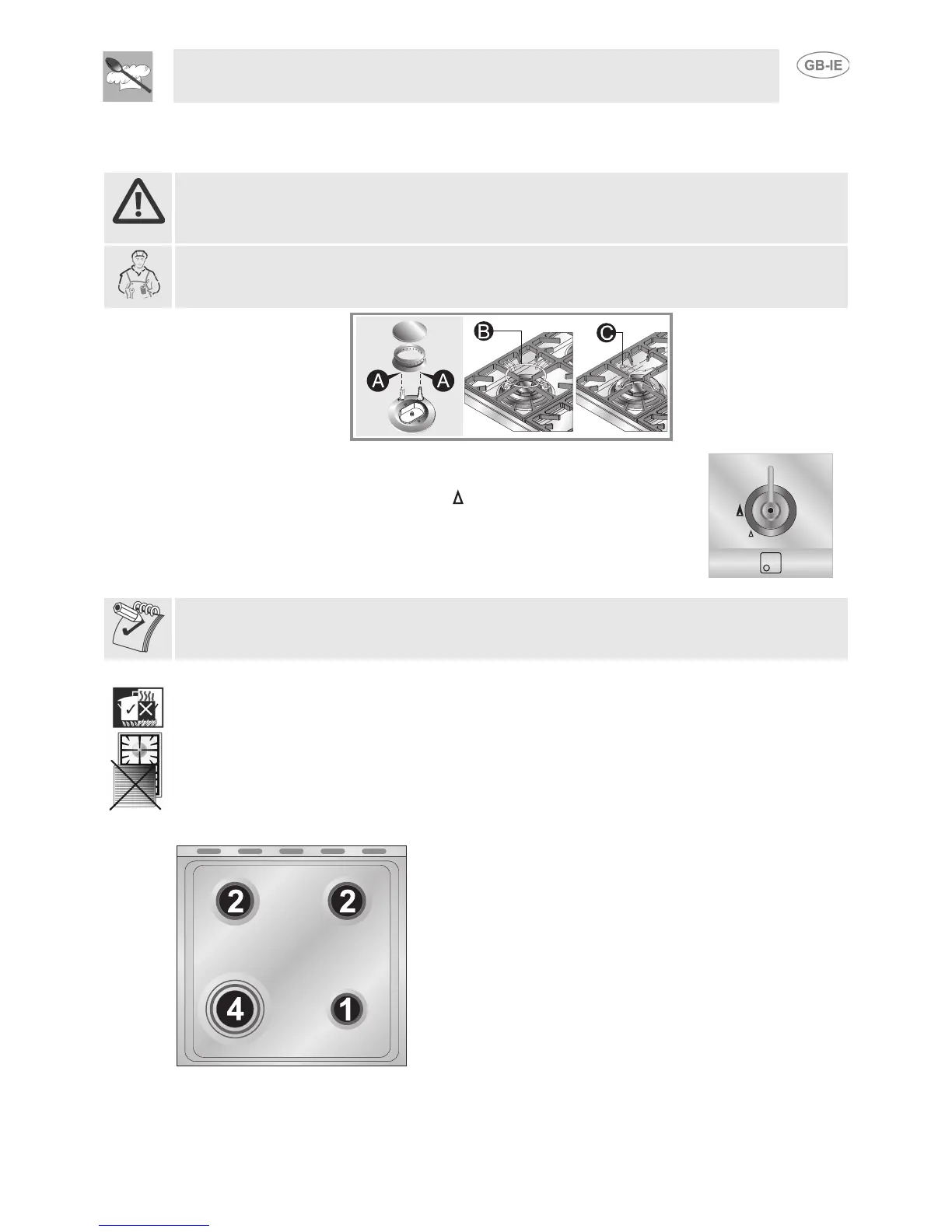 prevent burns or damage to the hob during cooking, all pans or griddle plates must be placed inside the