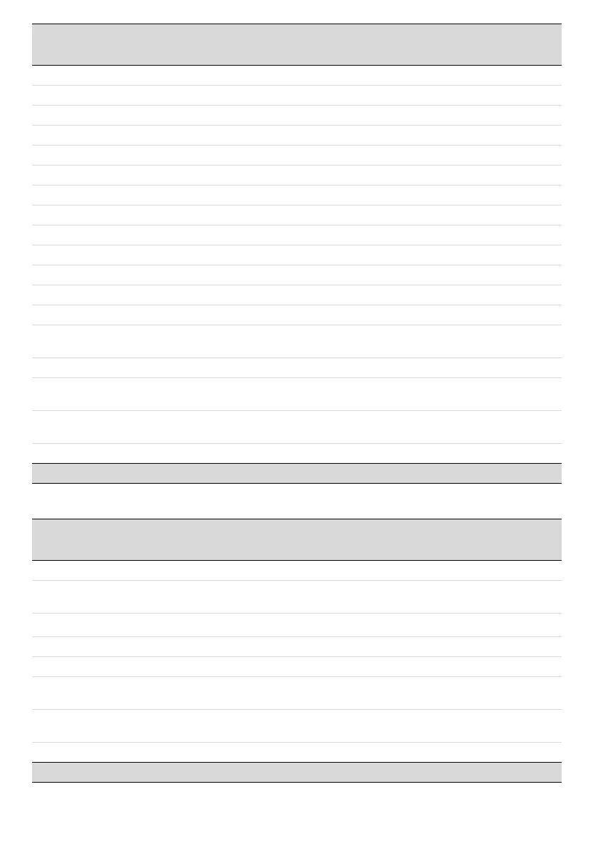 Cooking information table (auxiliary oven)
