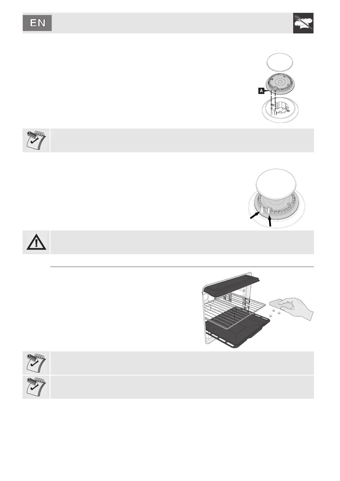 place with their respective burner caps, and ensuring that the holes A in