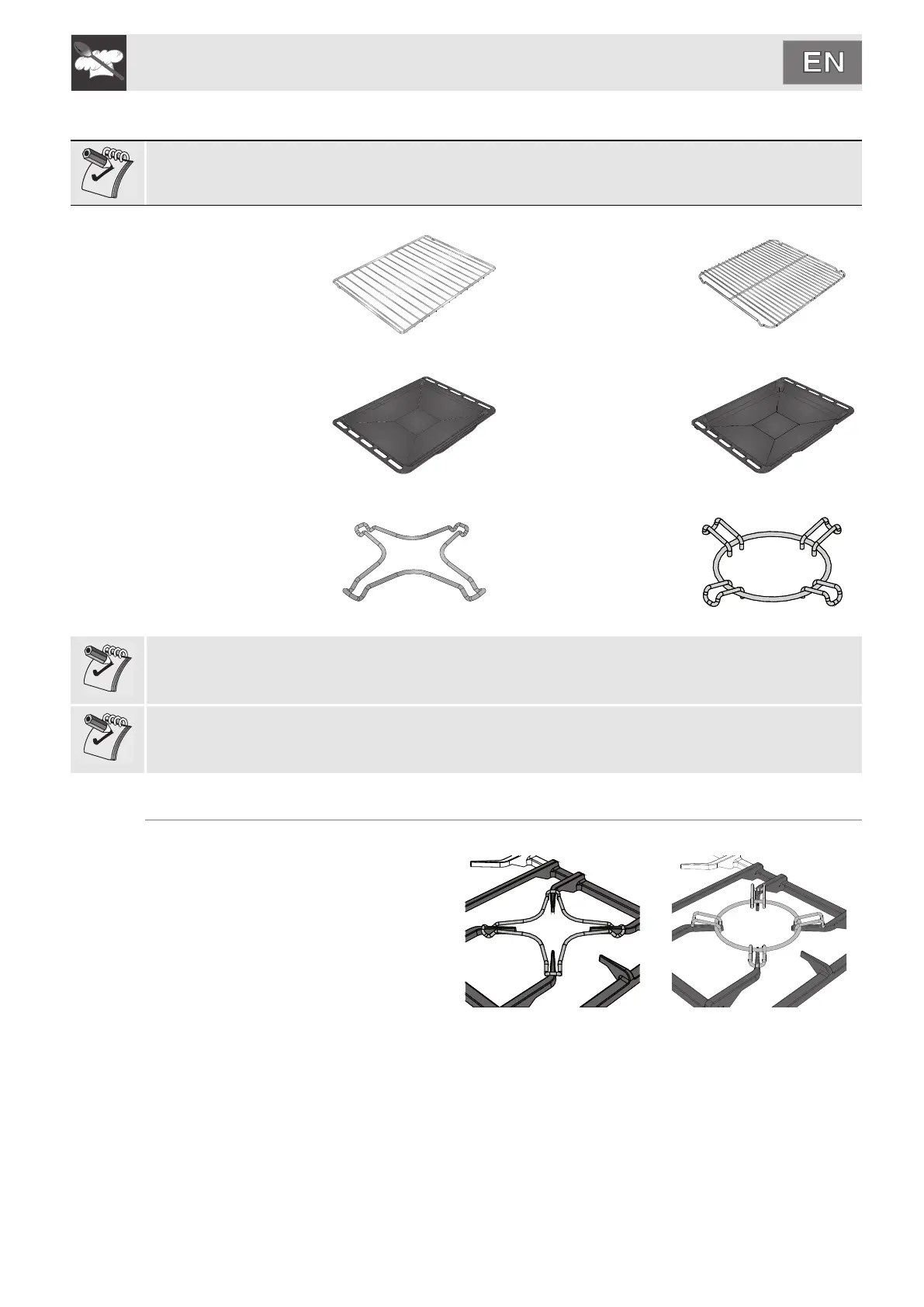 The oven accessories intended to come into contact with food are made of materials that comply with