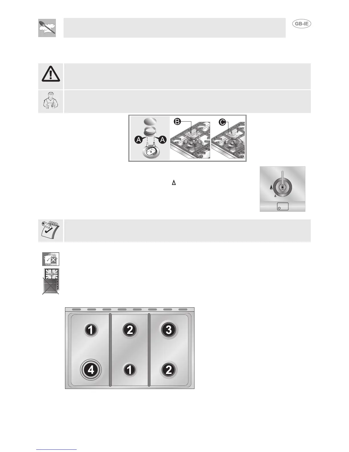 The optional grid B is for use with woks. To prevent damage to the hob, the cooker comes complete with