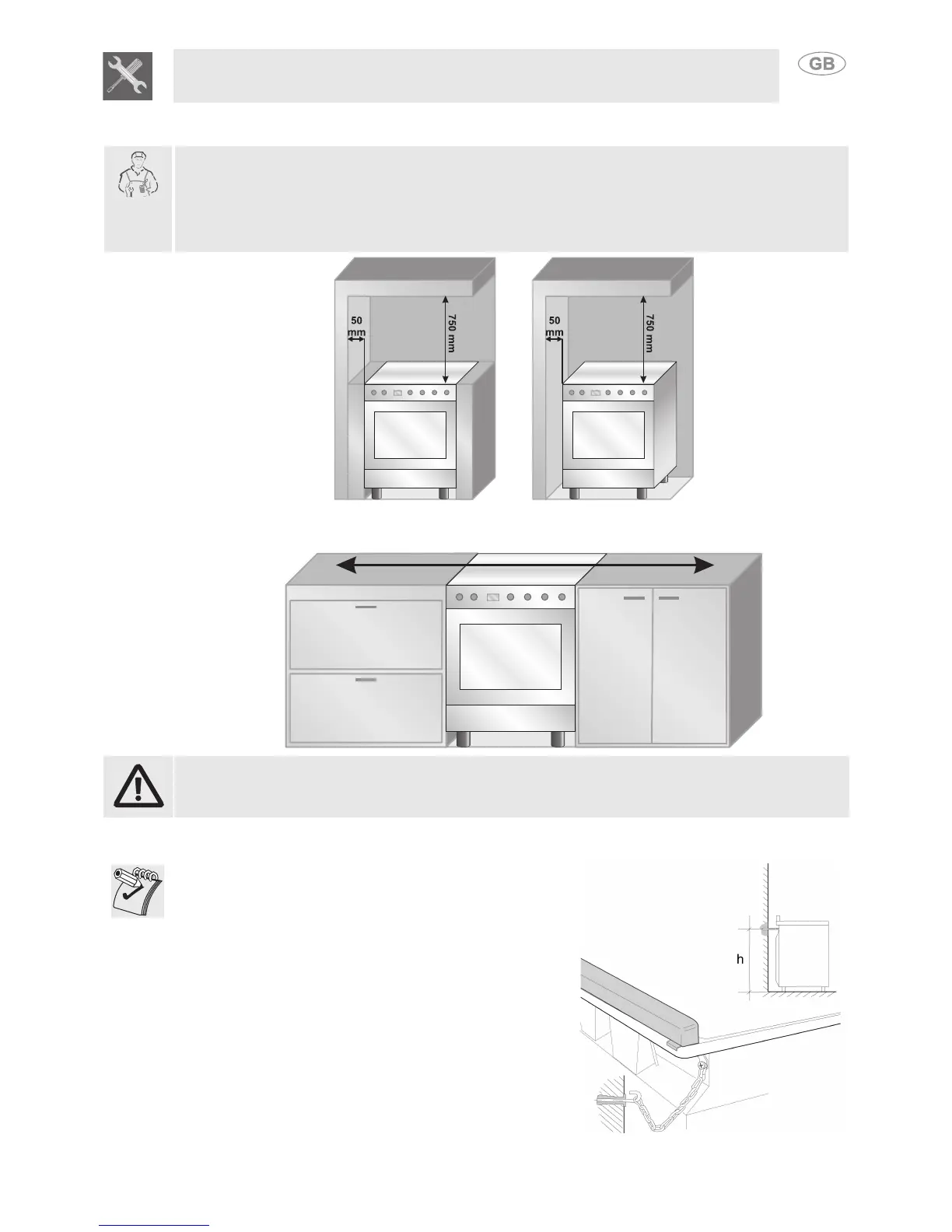 installation classes. Any wall cupboards or ventilation hoods must be at a distance of at least 750 mm