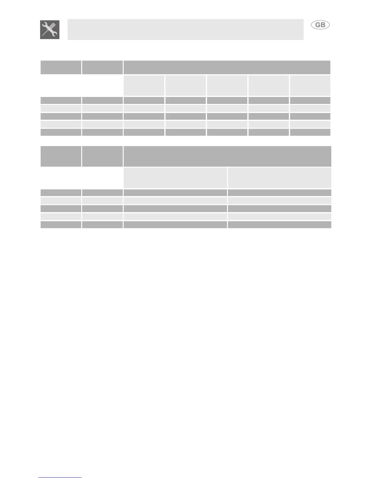 4.2 Burner and nozzle characteristics table (60 cm model)
