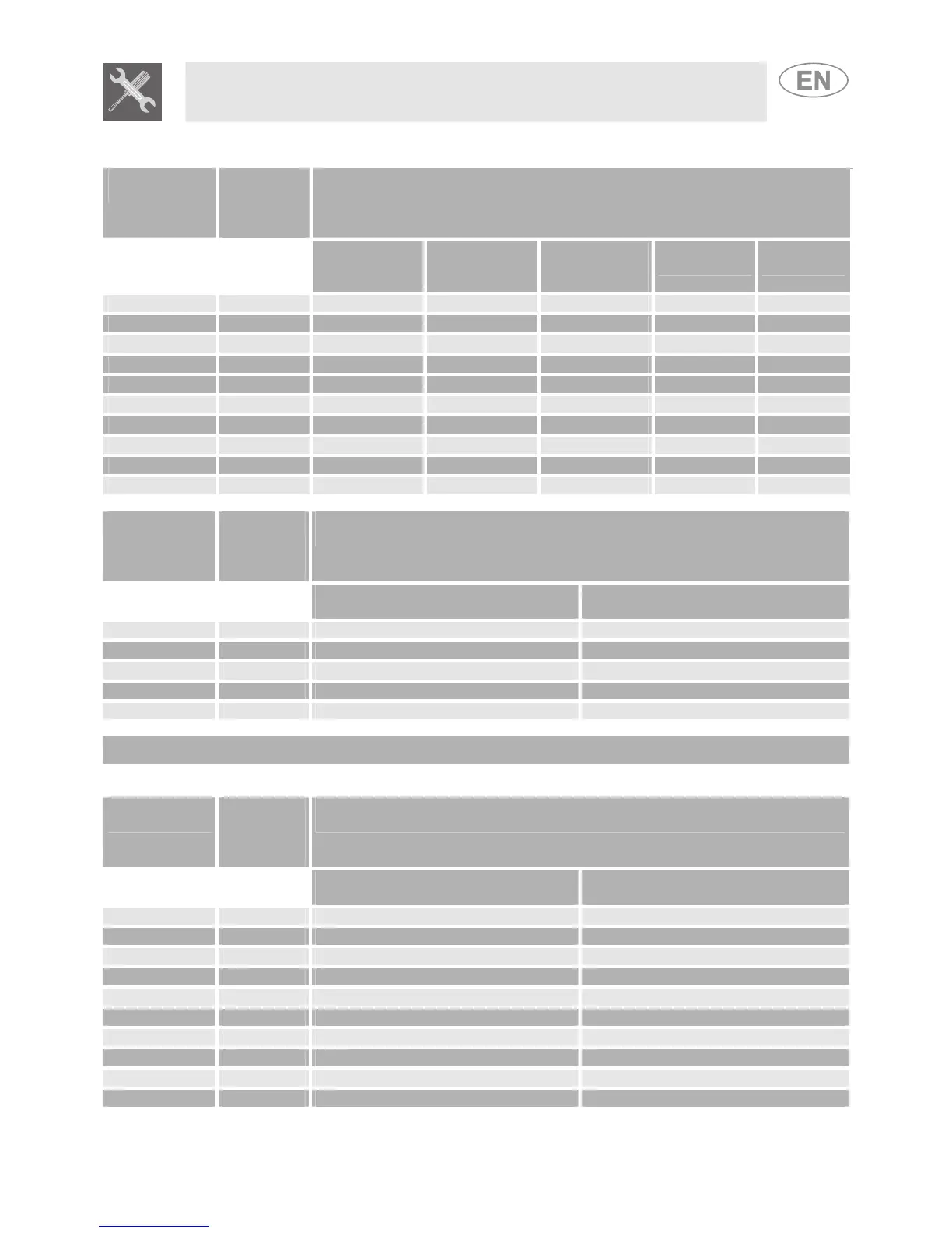 3.3 Burner and nozzle characteristics table (90 cm model)